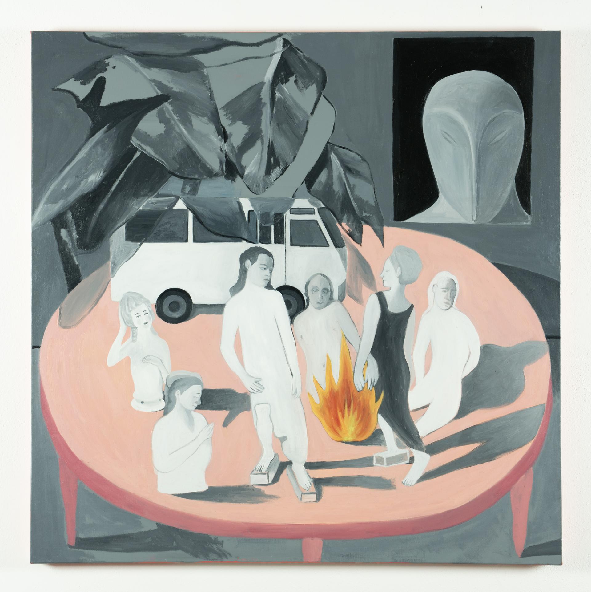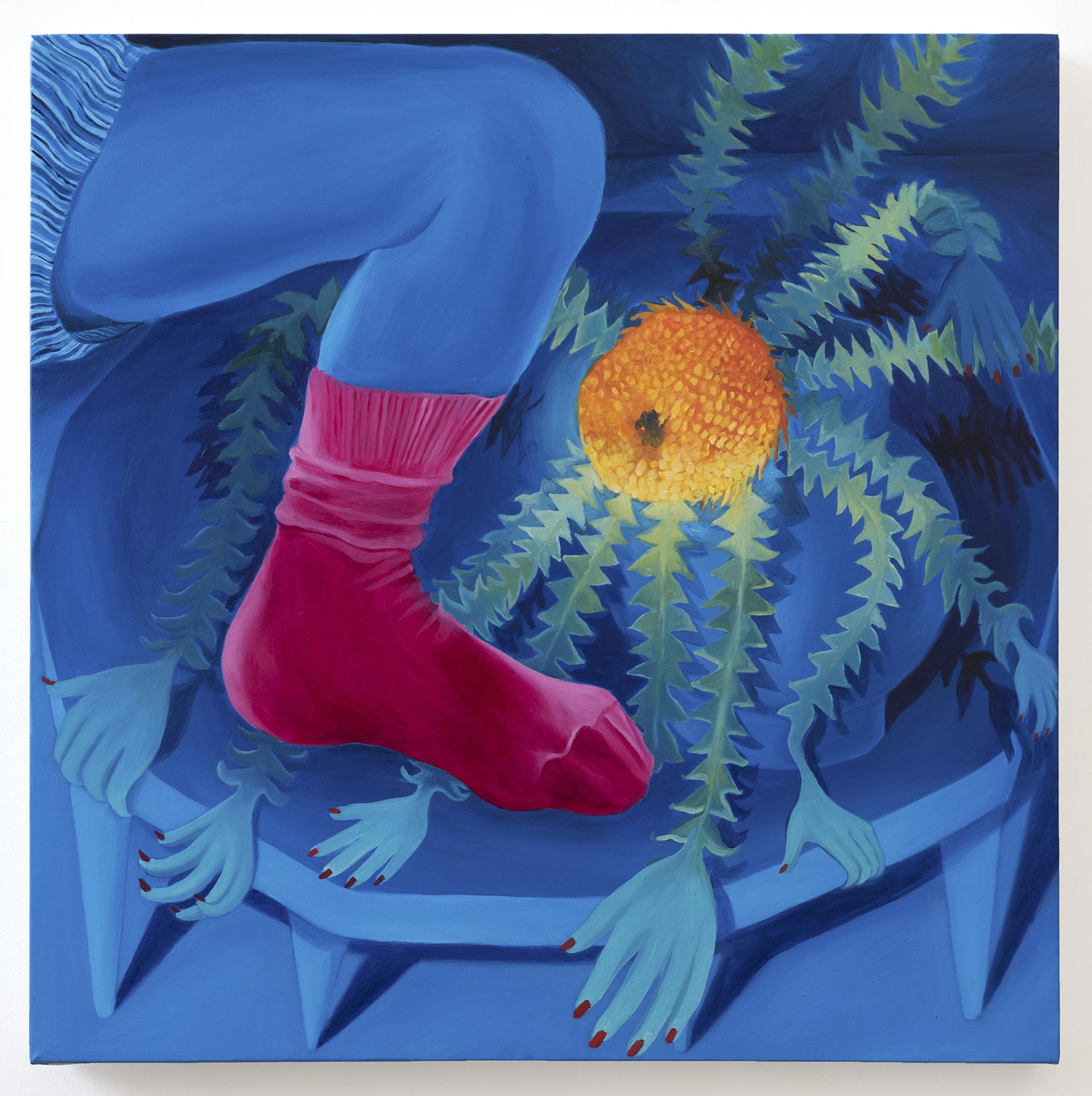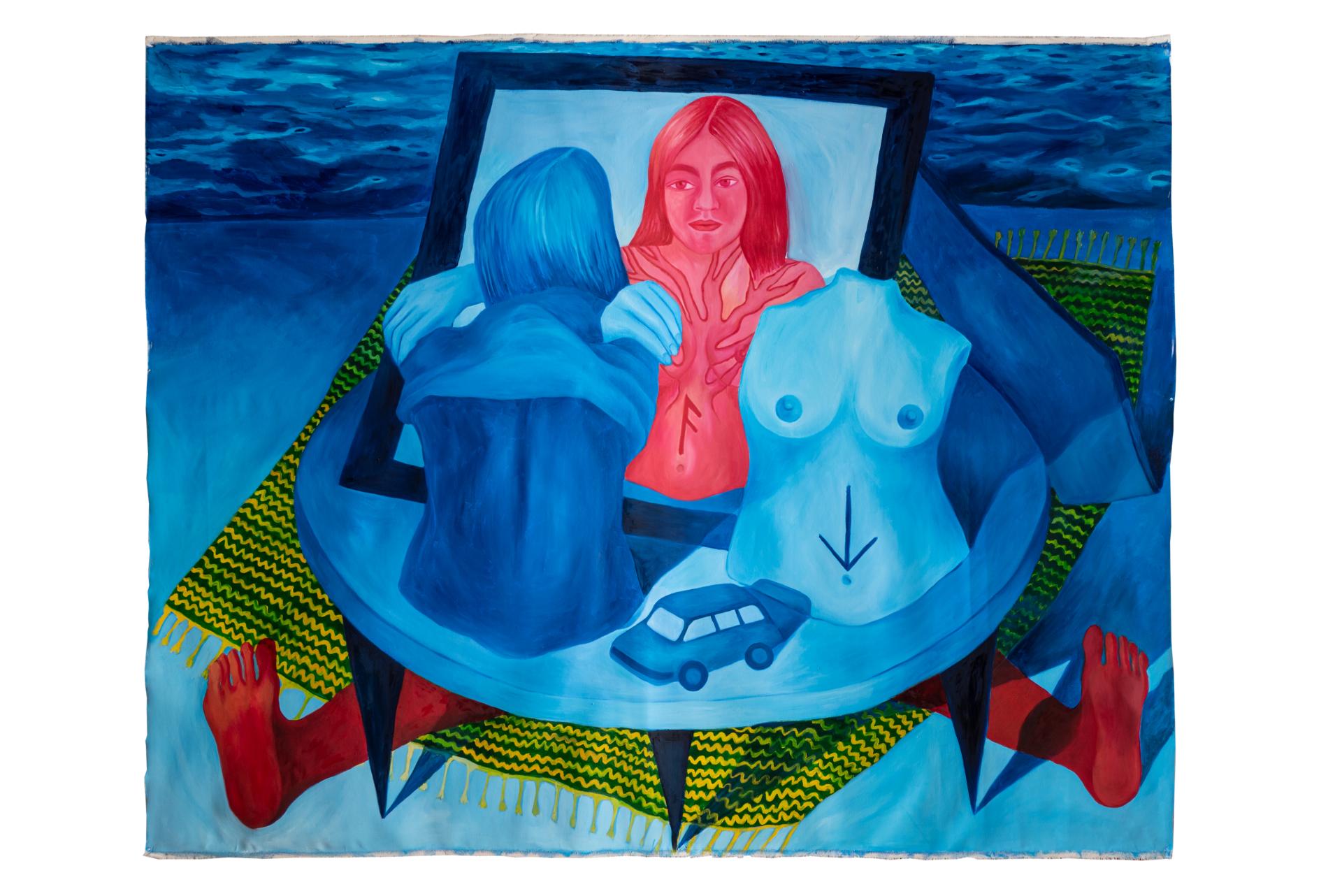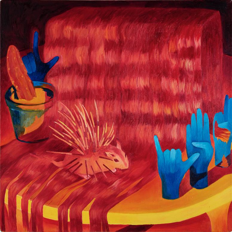 Her work creates a mysterious environment, rich with diverse cultures, through a poetic exploration centered on the life of everyday objects, thoughtfully arranged within the tradition of still life painting. Her pieces are distinguished by the presence of a platform on which childhood toys, plants, and common objects rest—a symbolic stage that, like a theatrical scene, elevates the ordinary and the prosaic to an extraordinary and enigmatic dimension. The dreamlike atmosphere is evoked through color and the unique juxtaposition of certain elements. These platforms frame and naturally reveal the artist’s inner world, suspended between dream and reality.
