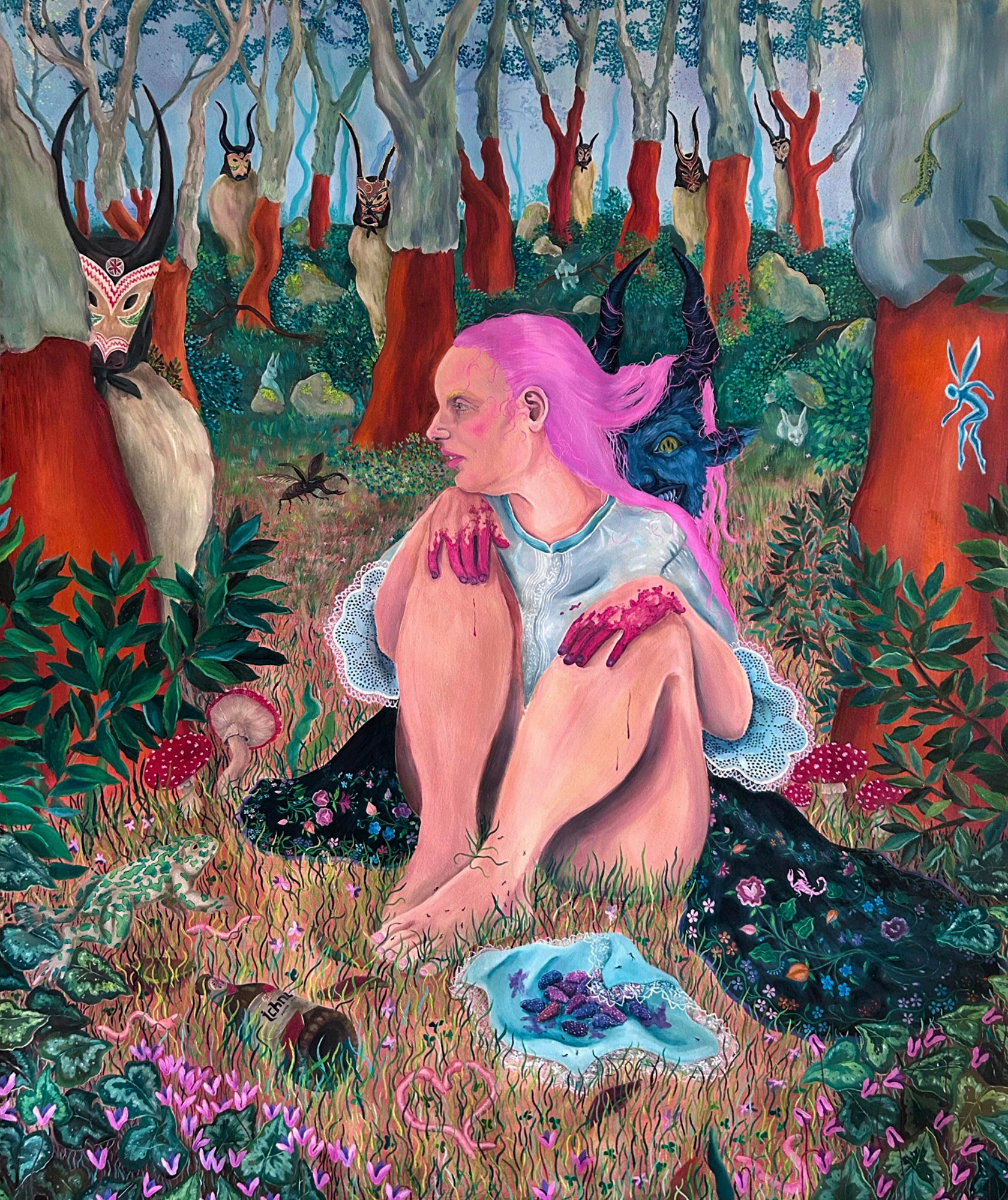 Dorotea Tocco's works find form through the aberrant with a thought that deviates from common morality. Her subjects are mainly women investigating their own femininity; no longer presented as an object of vision (view) of painting, they obtain a different enunciation. Of these inappropriate bodies we note a will for profound self-determination with respect to the