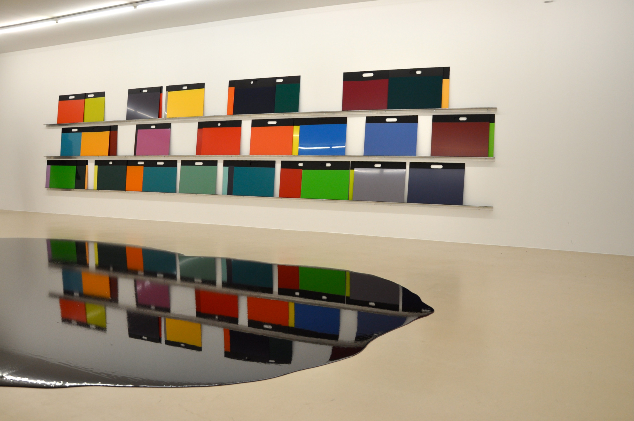 The German artist, best known for his varnish Paint-Lakes and Pouring boxes, bases his work mainly on color, and his works can now be identified as paintings, now as sculptures. A research that the German artist has been carrying out since the late 1980s when he began to realize the first "liquid paintings", color spots, pouring and diving, a mixture of paint and synthetic emulsions that, poured on a surface, emerge as intense and luminous shapes. Splitt, therefore, does not paint but pours, and in the act of pouring he studies the qualities of the liquid, its ability to spread and the process of gradual drying, a way of investigating the relations between space, matter and time.