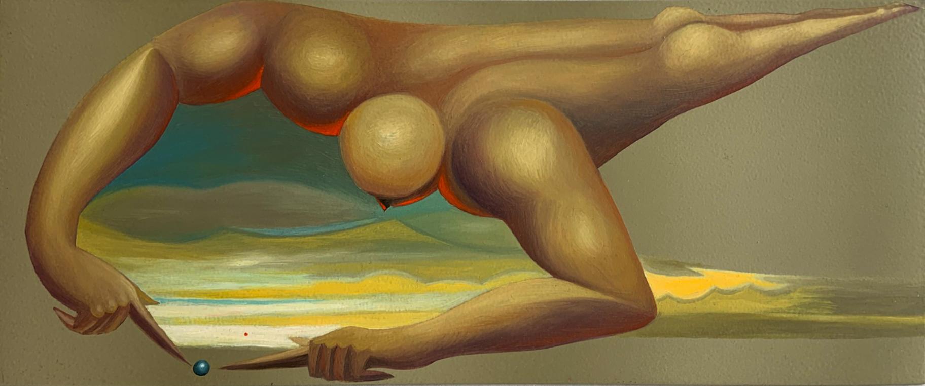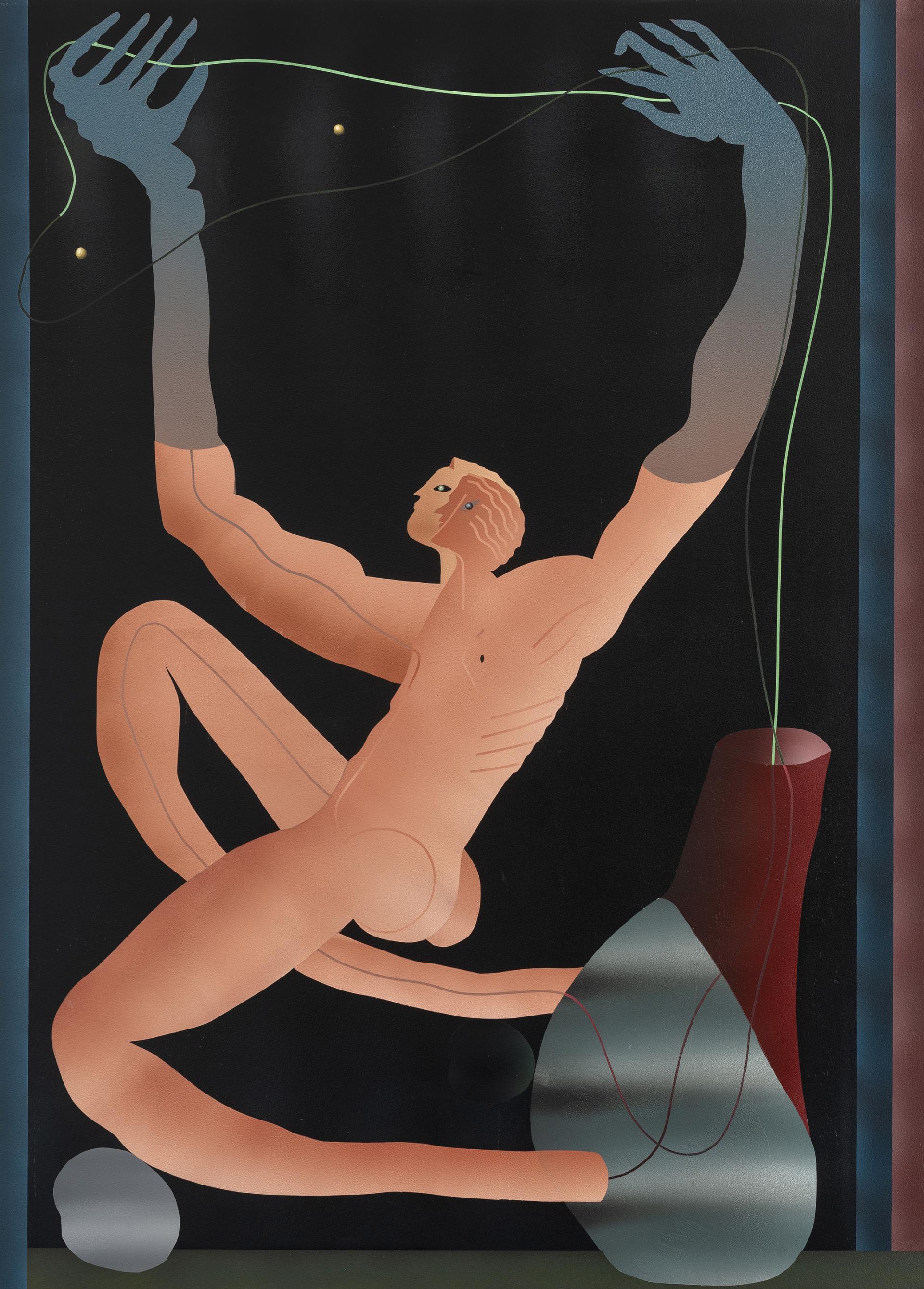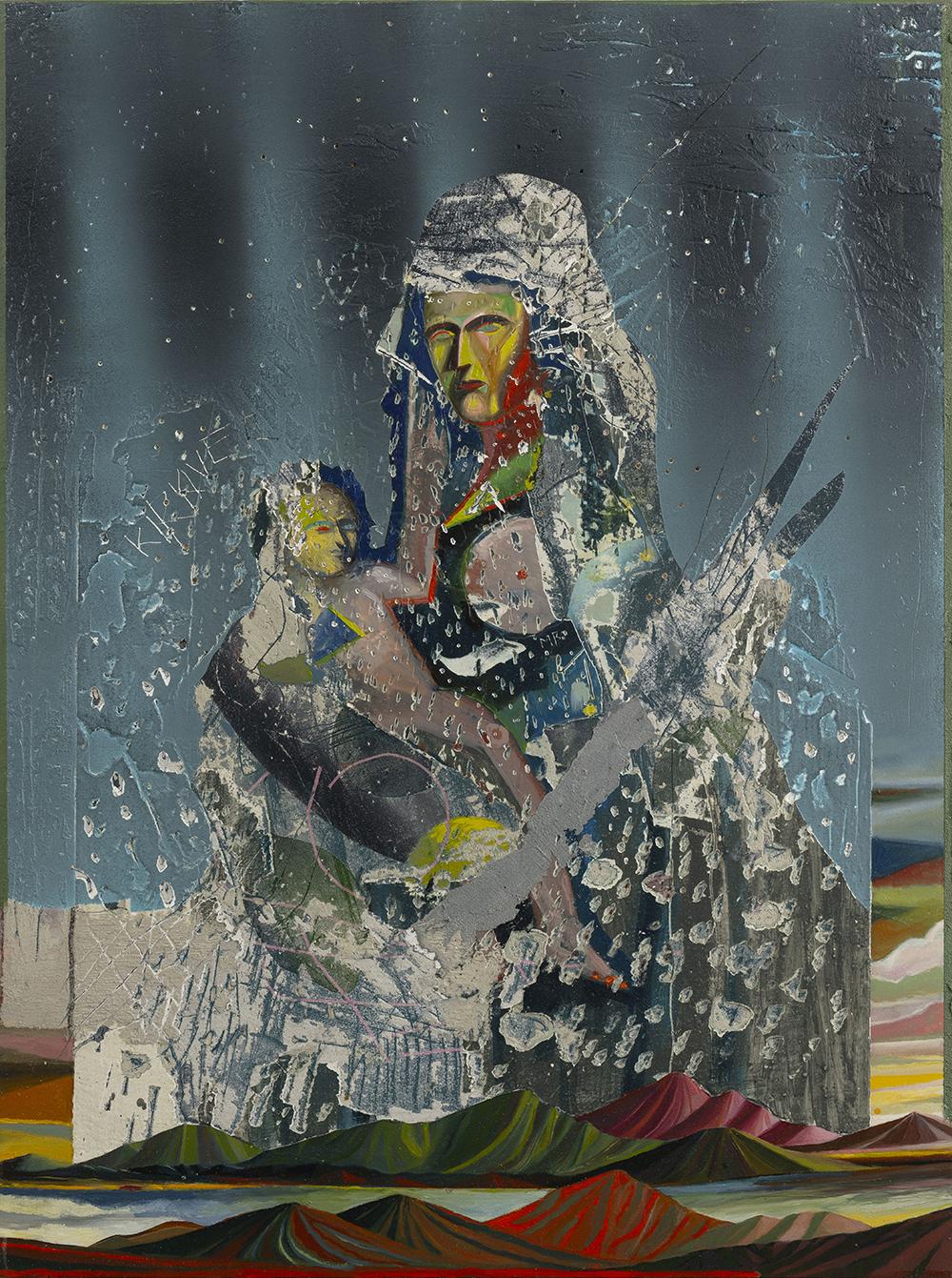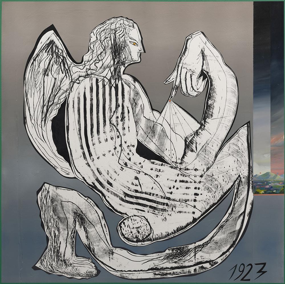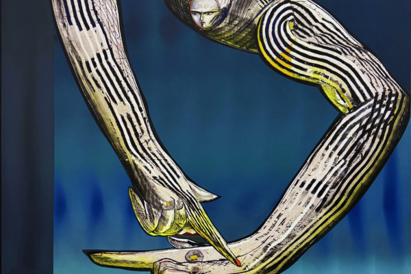 With a strong technical ability and richness of elements, Mattia Barbieri’s painting reveals a style where everything unfolds on a single plane, within which disparate and heterogeneous elements are often arranged without apparent hierarchy. The composition, solid and at times virtuosic, gathers sediments from the collective imagination, the history of art, and popular culture, recombined in a new form. The pictorial elements, whether belonging to tradition or more daring visual neologisms, are used as words that make up a grammatical code employed by the artist to interact with painting as a language, through which everything is deconstructed, restructured, and reinterpreted. The surface of the paintings is sometimes animated by signs and engravings, and a very delicate line marks the distinction between the pictorial and sculptural forms, which the artist often uses as an alternative mode of expression.