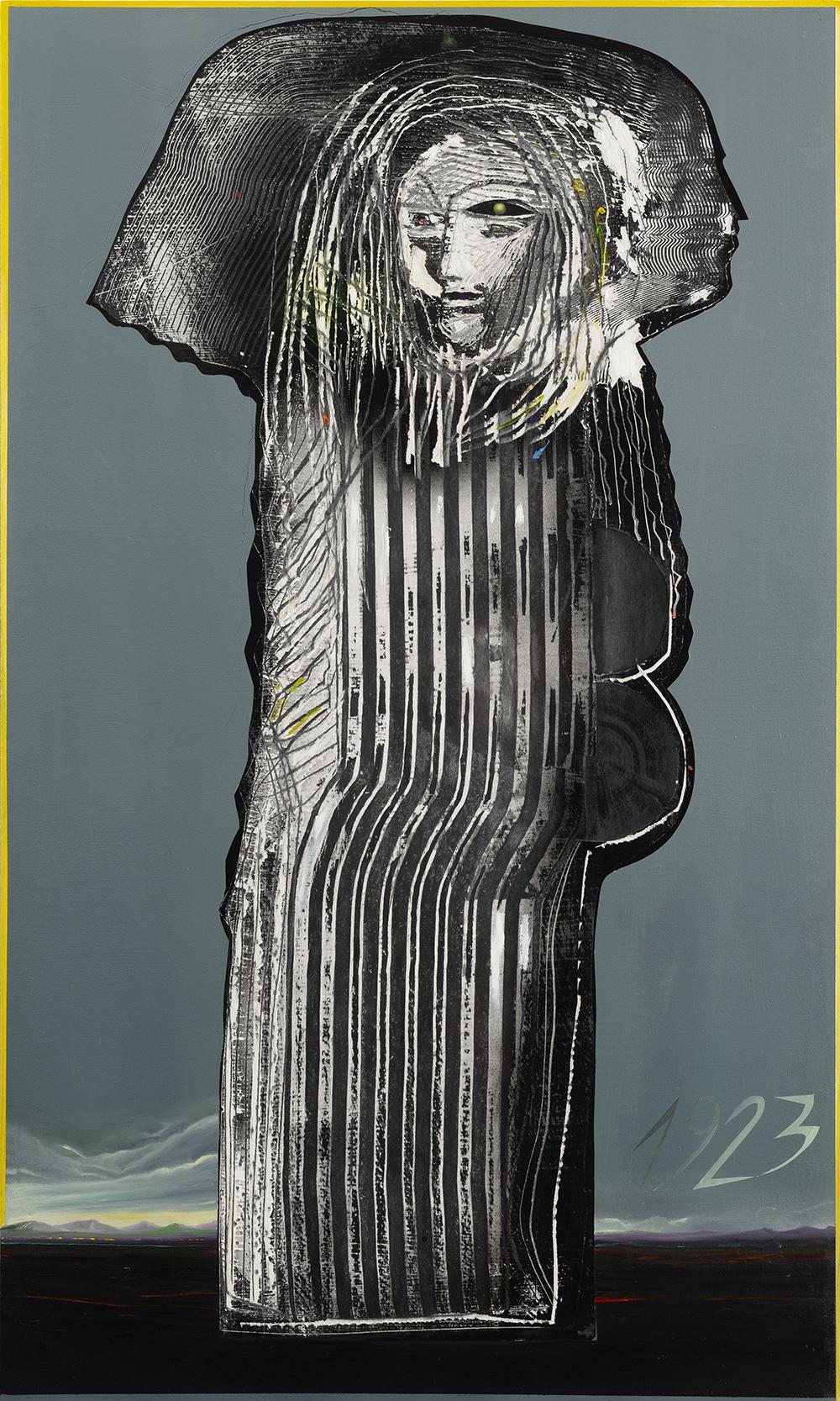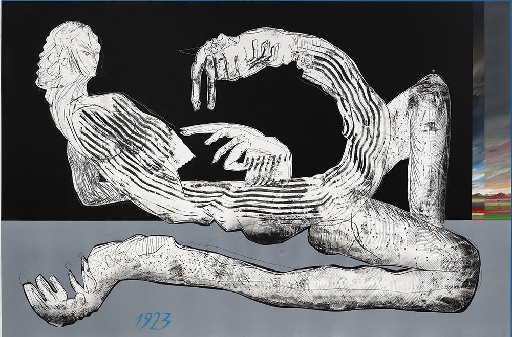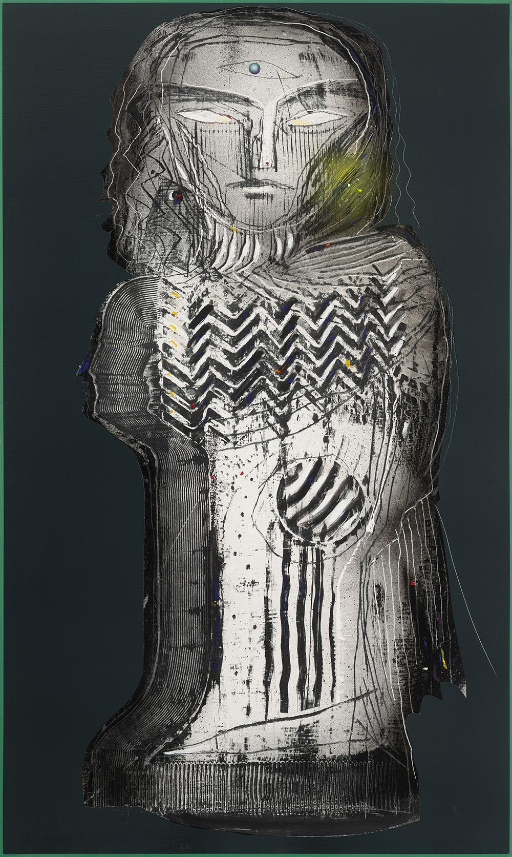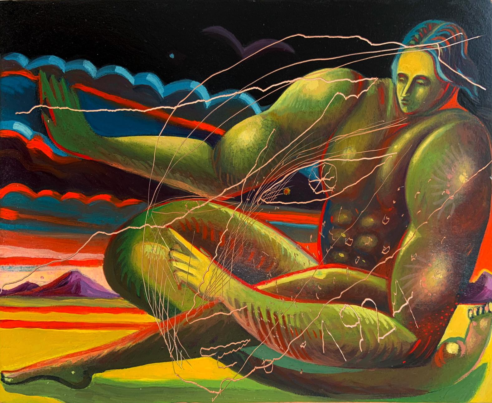With a strong technical ability and richness of elements, Mattia Barbieri’s painting reveals a style where everything unfolds on a single plane, within which disparate and heterogeneous elements are often arranged without apparent hierarchy. The composition, solid and at times virtuosic, gathers sediments from the collective imagination, the history of art, and popular culture, recombined in a new form. The pictorial elements, whether belonging to tradition or more daring visual neologisms, are used as words that make up a grammatical code employed by the artist to interact with painting as a language, through which everything is deconstructed, restructured, and reinterpreted. The surface of the paintings is sometimes animated by signs and engravings, and a very delicate line marks the distinction between the pictorial and sculptural forms, which the artist often uses as an alternative mode of expression.
