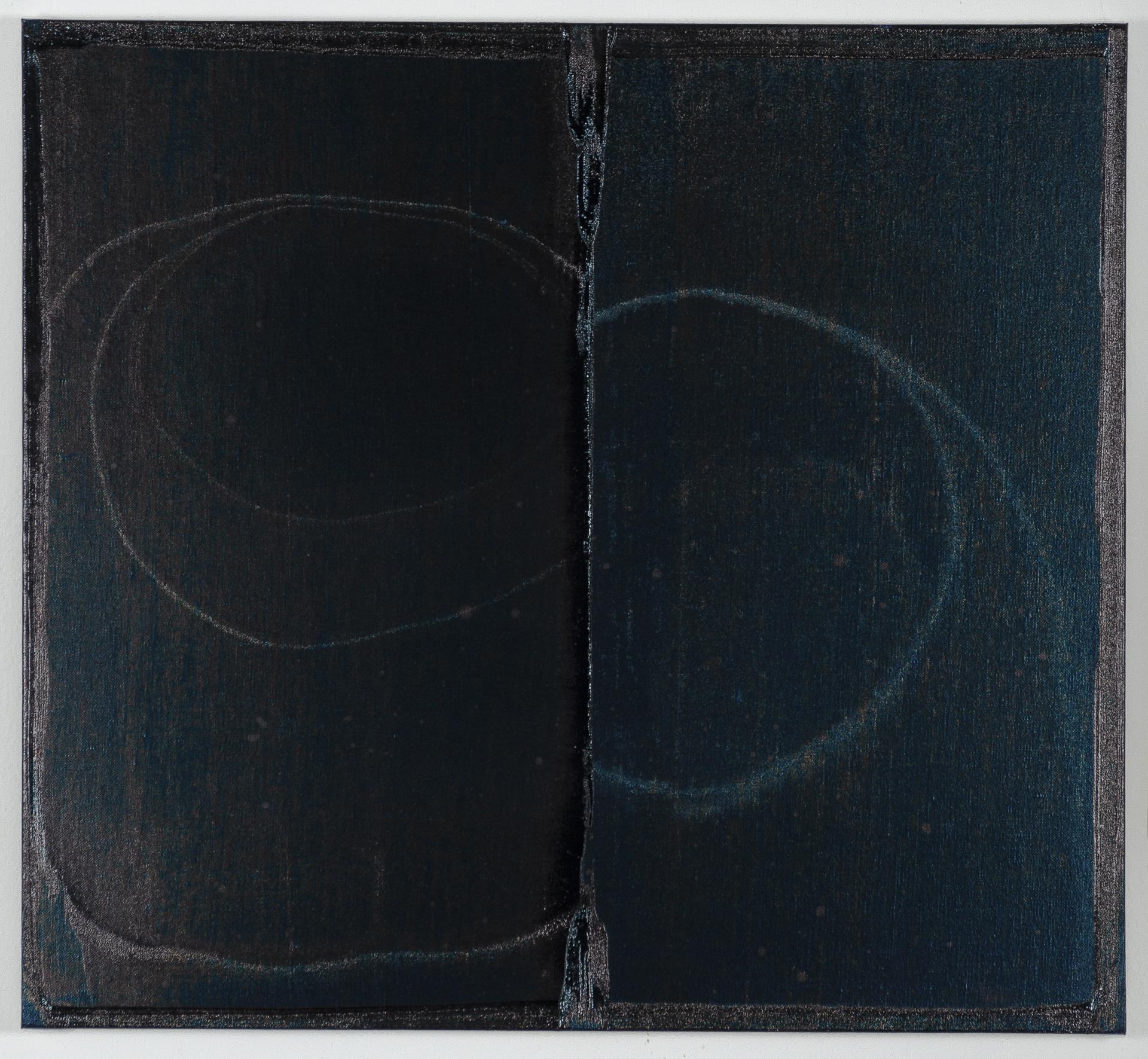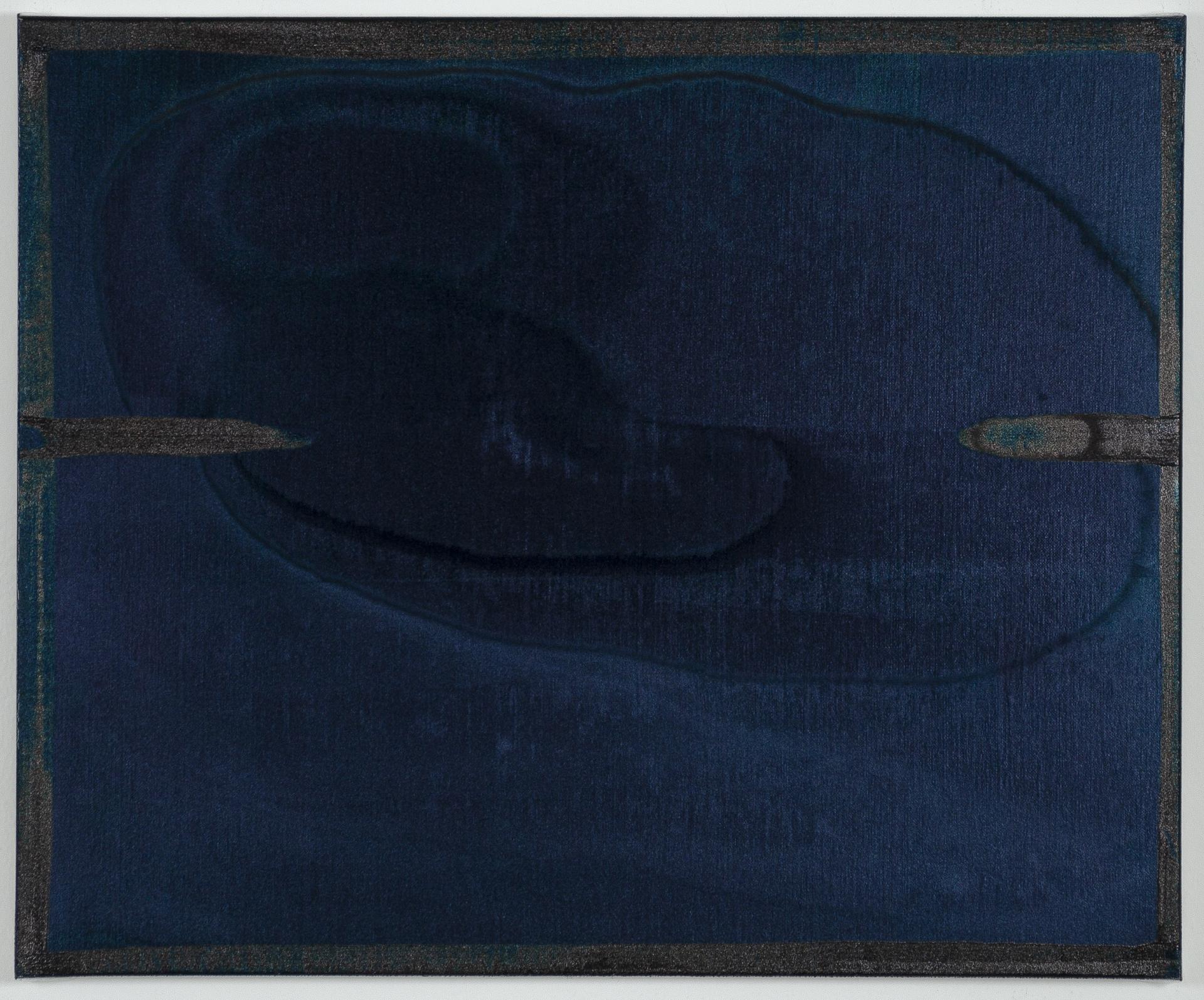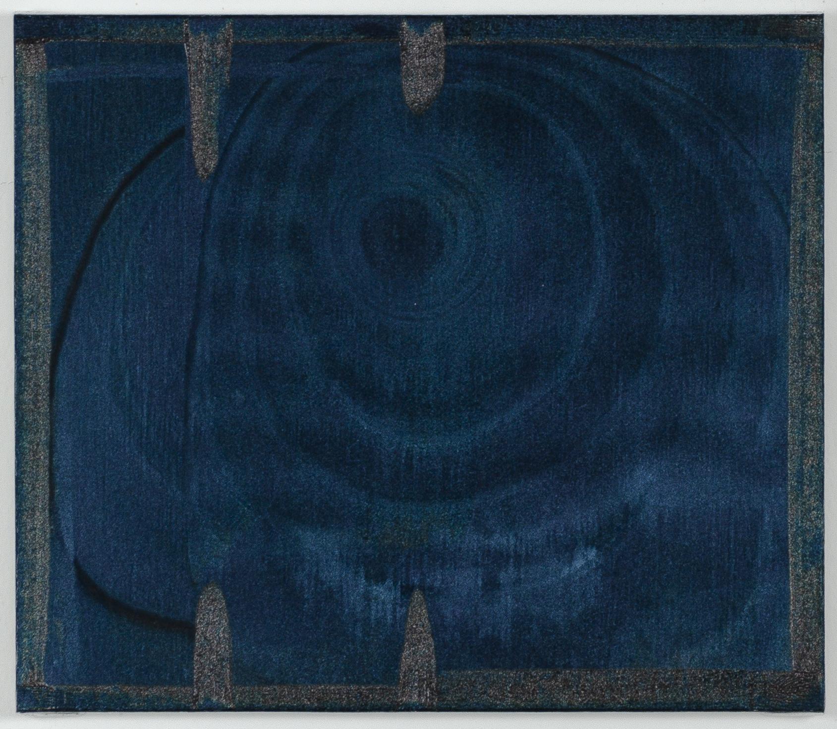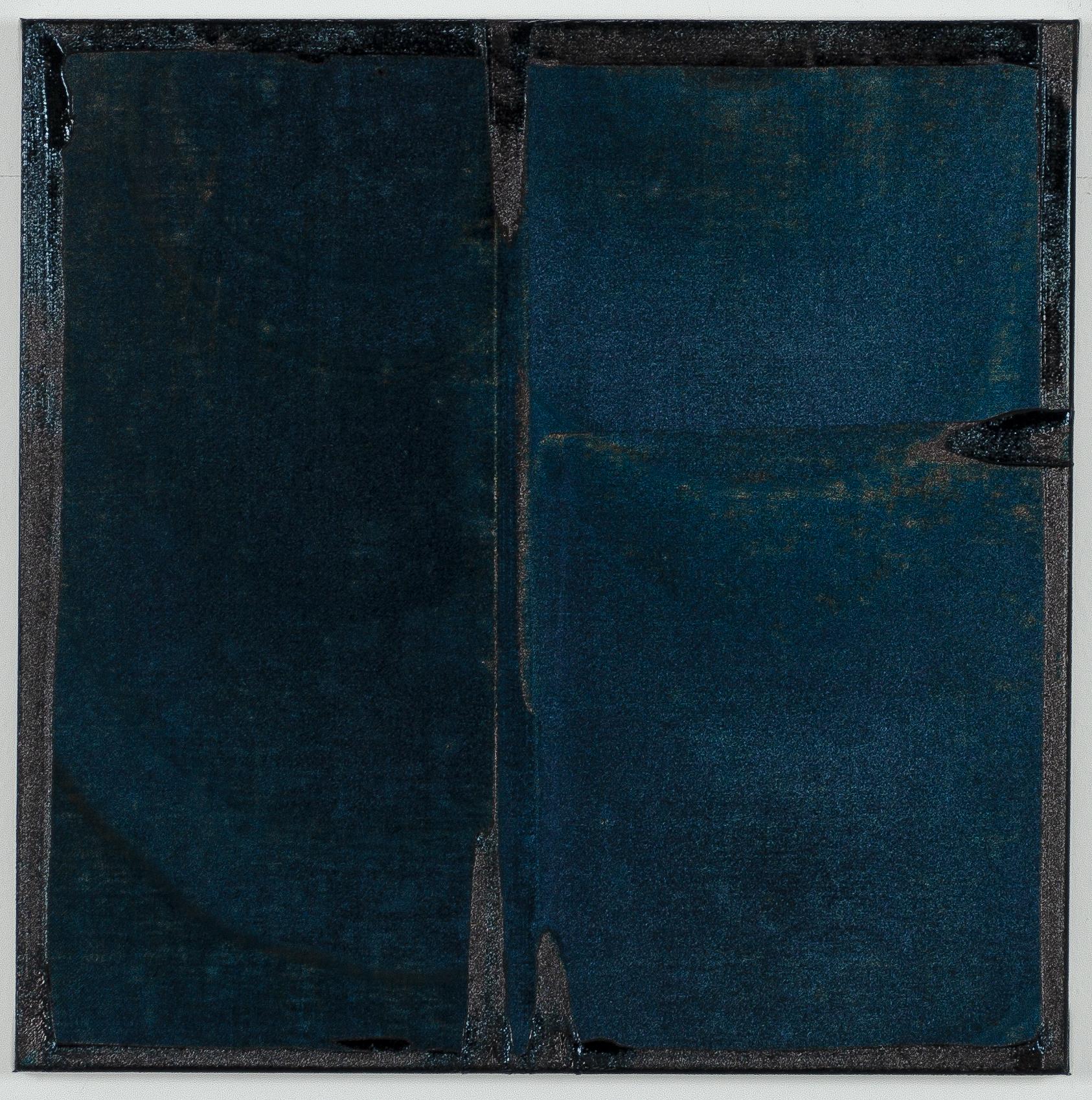 Prussian blue is a highly unstable pigment, destined for chromatic transformation and oxidisation. The chemical compound known as ferric ferrocyanide gives birth to an utterly distinctive blue, also known as Eisenblau (iron blue), which – when exposed to the action of sunlight and when in contact with canvases’ preparatory layers – deviates chromatically, assuming a mottled aspect and ultimately returning to its origins as a ferrous material, literally rusting. These artworks are born blue and, through an innate evolutionary process neither determined nor controlled by the artist, oxidise with time and partially ‘rust’, revealing a brownish-red colour in some or many areas of the painting. In the formal synthesis that animates these paintings, they establish and circumscribe themselves within the physical confinements, distilled and idealised, of the tableau format typical of European twentieth-century painting.