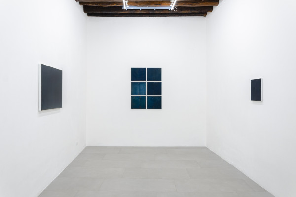 Together with this thematic declaration, relative to his Prussian Blue monochromes, the artist outlines the terms of a protocol, of a praxis tested by experience, that enlists chance events in the painting’s formalisation, in its final realisation: its ‘apparition’. In the subtraction of his presence and authorial capacity, the artist adopts a detachment from the work similar to that of the observer: having coordinated all the elements essential to what becomes a sort of aesthetic experiment, one only partially controlled, he awaits its final form as witness to its self-realisation.