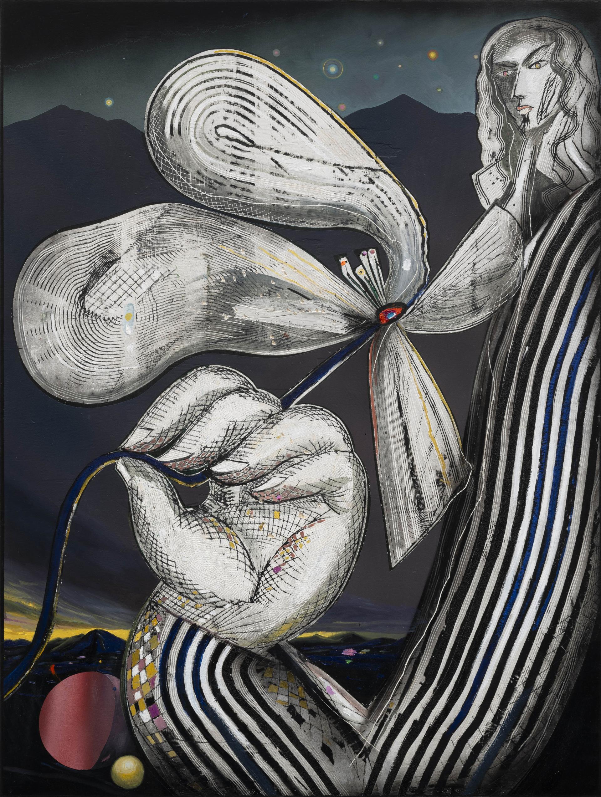 The contrast between delicacy and monumentality is one of the central themes of the exhibition. On the one hand, the flower symbolizes fragile beauty; on the other, Barbieri uses the force of painting and sculptural materials – such as concrete – to emphasize the physicality of the works, heightening the tension between the grace of the subjects and the power of the technique. The artist literally carves into the surfaces of his paintings, creating incisive marks reminiscent of sculpture, which give a tactile and three-dimensional quality to his compositions.