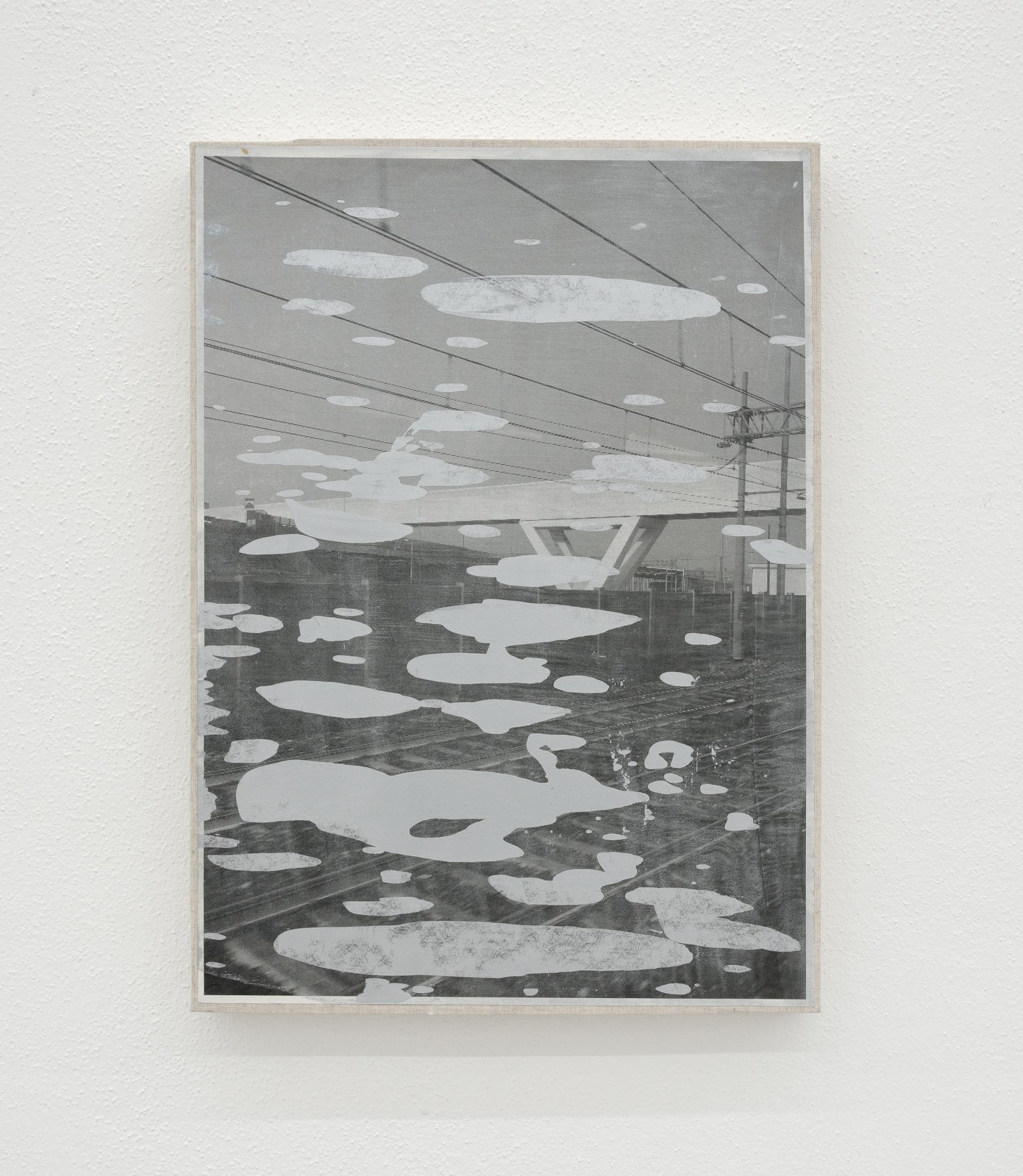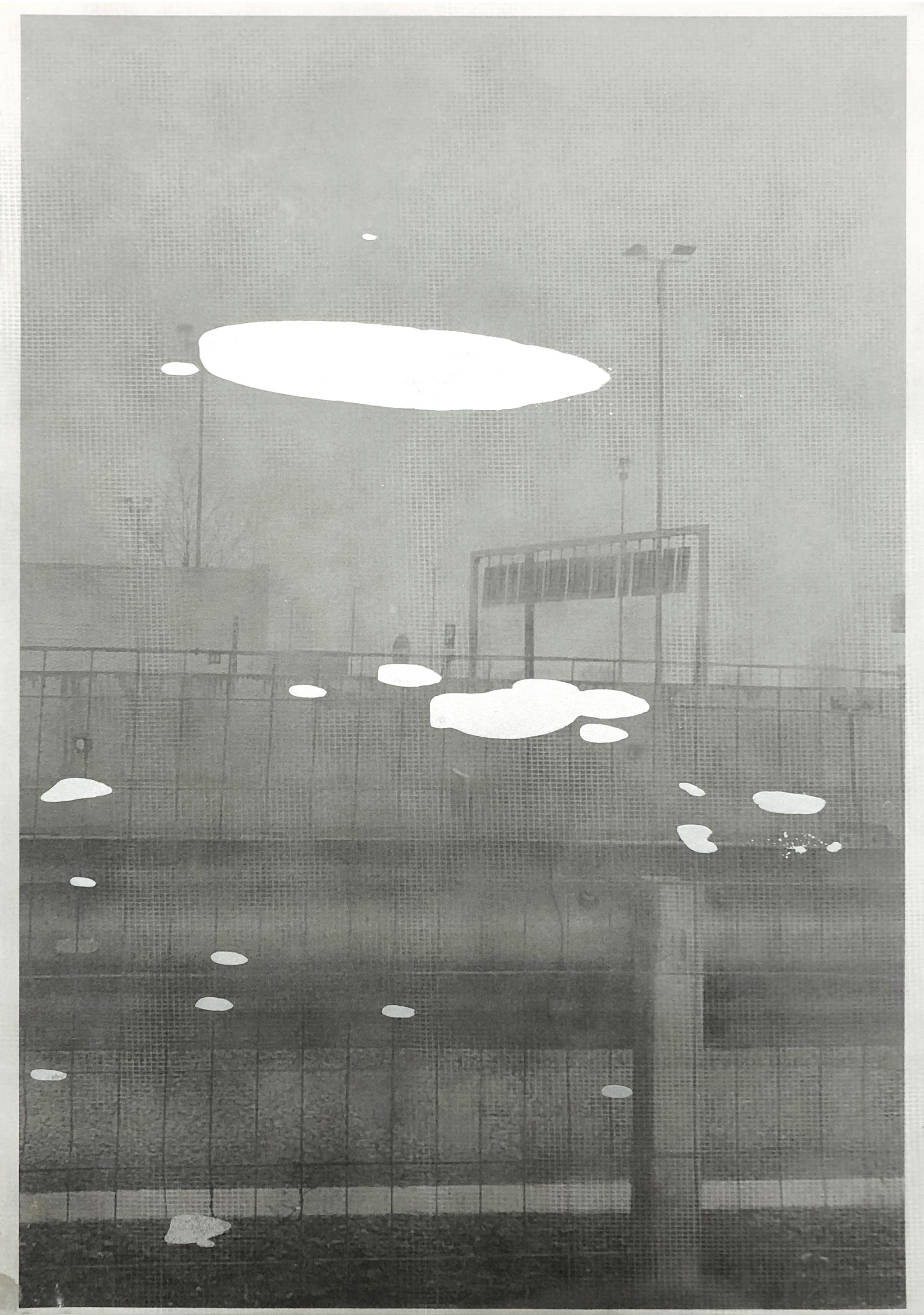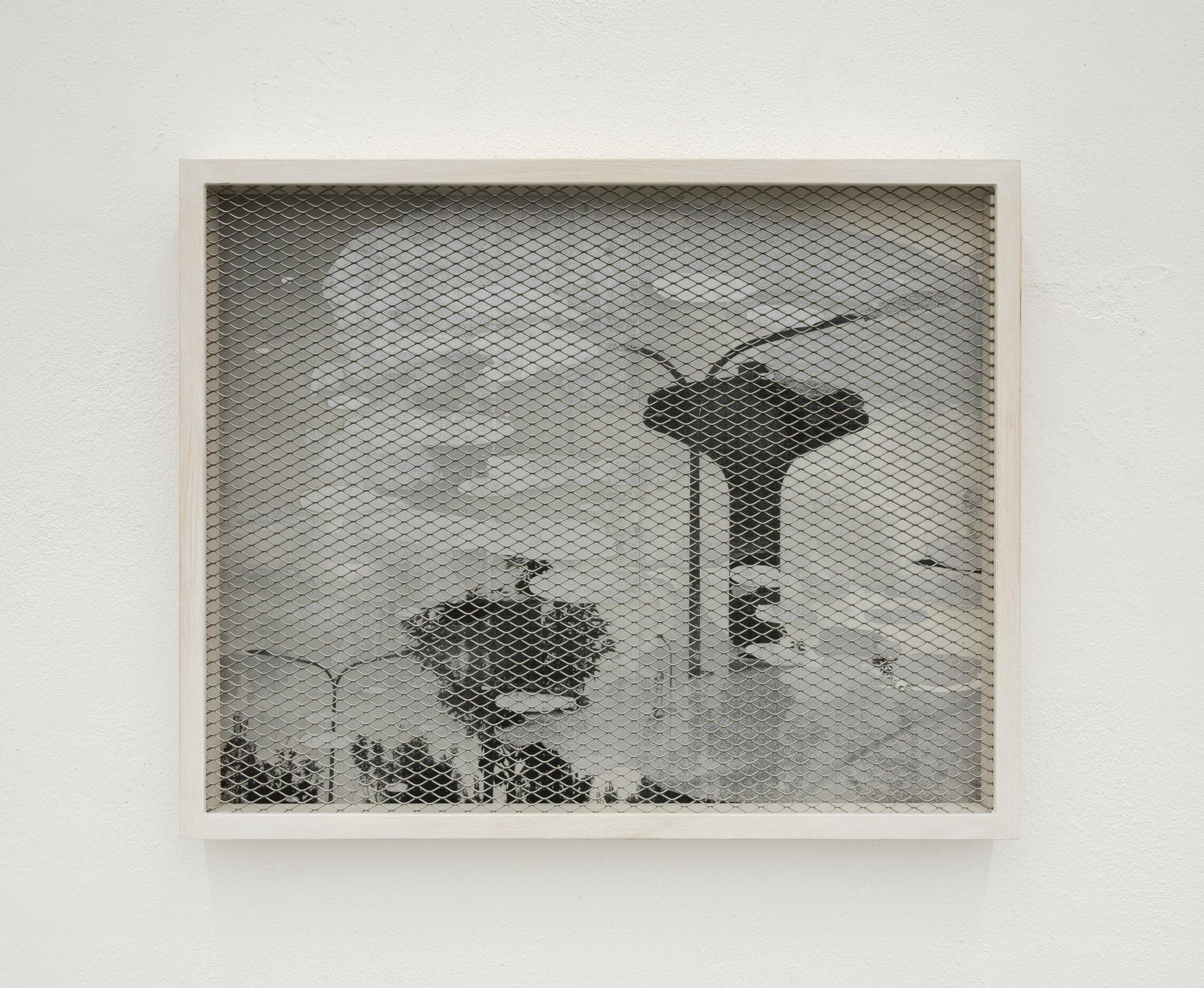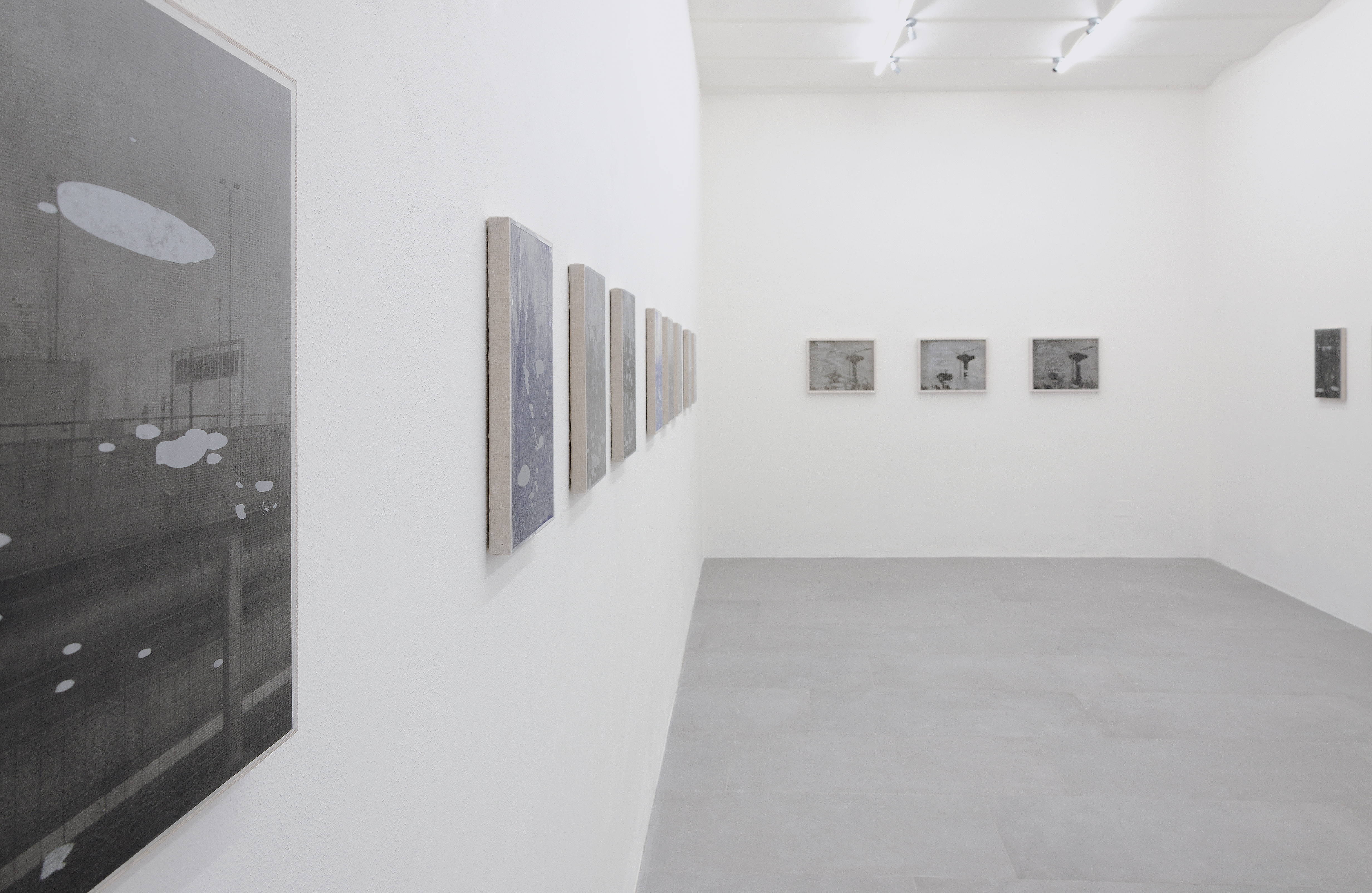 The novelty is represented by the insertion of reticular inserts, small cages that condense shreds of images, chromatic overlaps, always on those shades of whites and grays that punctuate the personal geography of the places so dear to Pancrazzi, real places that however lose their a properly geographical connotation to become symbols of different spatiality; meta-modern landscapes reduced to an essential image and filtered by human and mechanical metabolism, a crowd of rhythmic signs, which the artist does not seek to decode but to grasp in their complexity and in the infinite combinatorial possibilities, recognizing themselves in the low fidelity of reproduction. In this sense, the photocopier becomes the ideal tool to lower the glossy quality of self-celebratory photography, breaking it down into simplified screens.