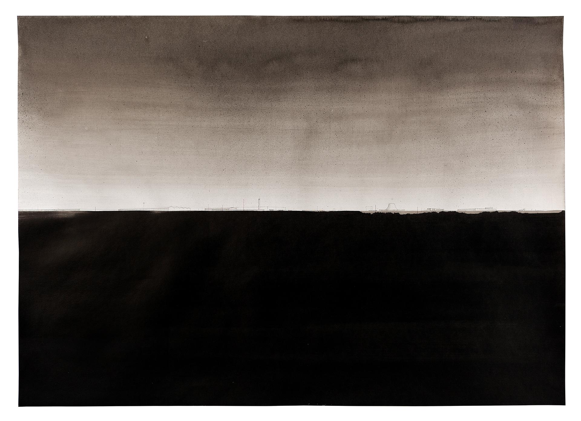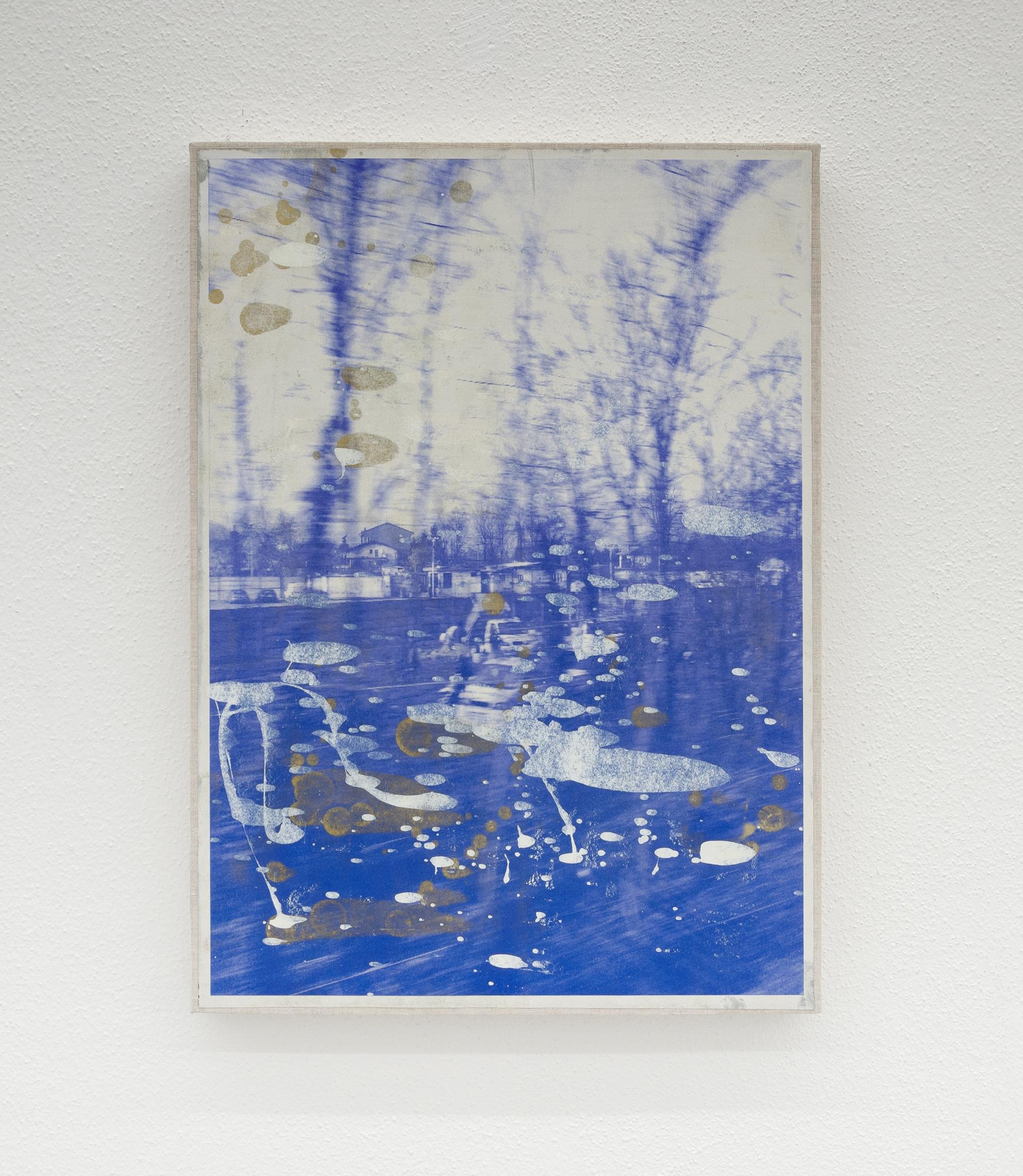 The images come from the continuous and prolific process of documentation that the artist builds in many different ways in order to form a real archive; a daily practice with which the artist documents the landscapes traversed as deep sediments, through images not printed in the retina, but in the bottom of the collective memory. Frequently in the works of Pancrazzi the necessary condition is created to determine a sky and an earth, a horizon from which architectural infrastructures emerge. In Paesaggi Ciclici Variati the image from background becomes fundamental and the painting is the fusion with the world of chemistry and physics, moving the new final image towards a controlled creative accident.