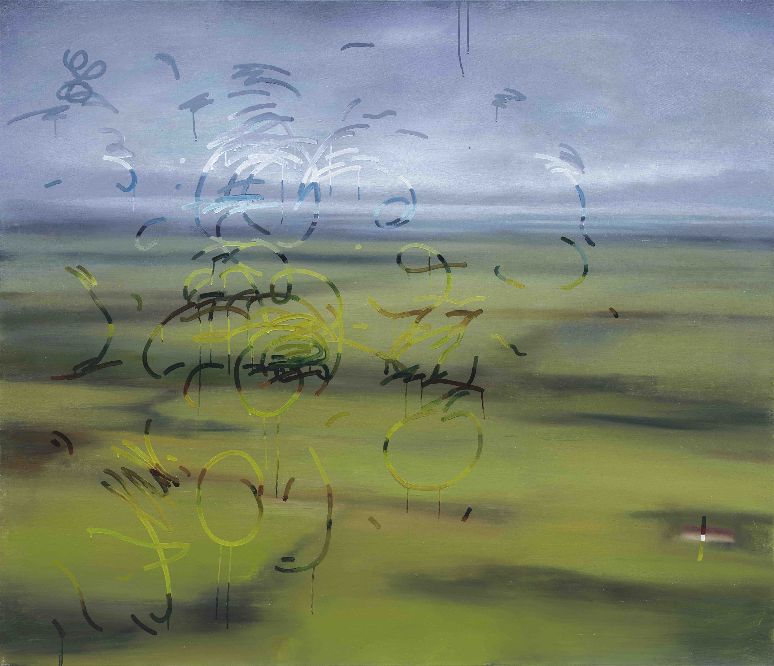 Jochen Mühlenbrink (Germany, 1980) is best known for his "trompe l'oeil" paintings made through a painting technique that "tricks the eye," inducing in the viewer the illusion of reality. His hyperrealistic works describe his philosophical approach to painting, where themes of perspective, imagination, escapism and secrecy converge. Mühlenbrink investigates the ambiguity of reality through the execution of natural optical effects in painting. His misted glass panes with figures and illustrations seemingly drawn from condensation, for example, are actually paintings and exist as much for the illusion they produce as for the material they are made of. The misty glasses, with their pristine surfaces disturbed by fingerprints, immediately become images within images and demonstrate what can be seen through them. Looking at these works by Mühlenbrink, one is reminded of the innocence and inventiveness of childhood when, sitting in the back of a car, one would trace drawings on fogged windows with one's fingers. In this way the artist offers a glimpse of what lies beyond the fog, and the colorful suburban houses give his paintings two areas of focus. In other works the artist paints windows as if they were obscured by tape, at other times in his oil paintings he reproduces scribbled sheets, postcards, Polaroid photos hung on a wall with portions of colored tape, all illusions produced by painting that subverts the preconceived idea of reality.
