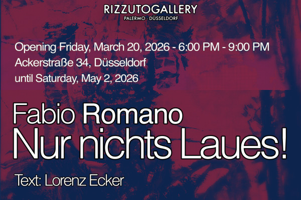 “Nur nichts Laues!” (Nothing Tepid!), solo exhibition of Fabio Romano (1988), accompanied by a text by Lorenz Ecker.
