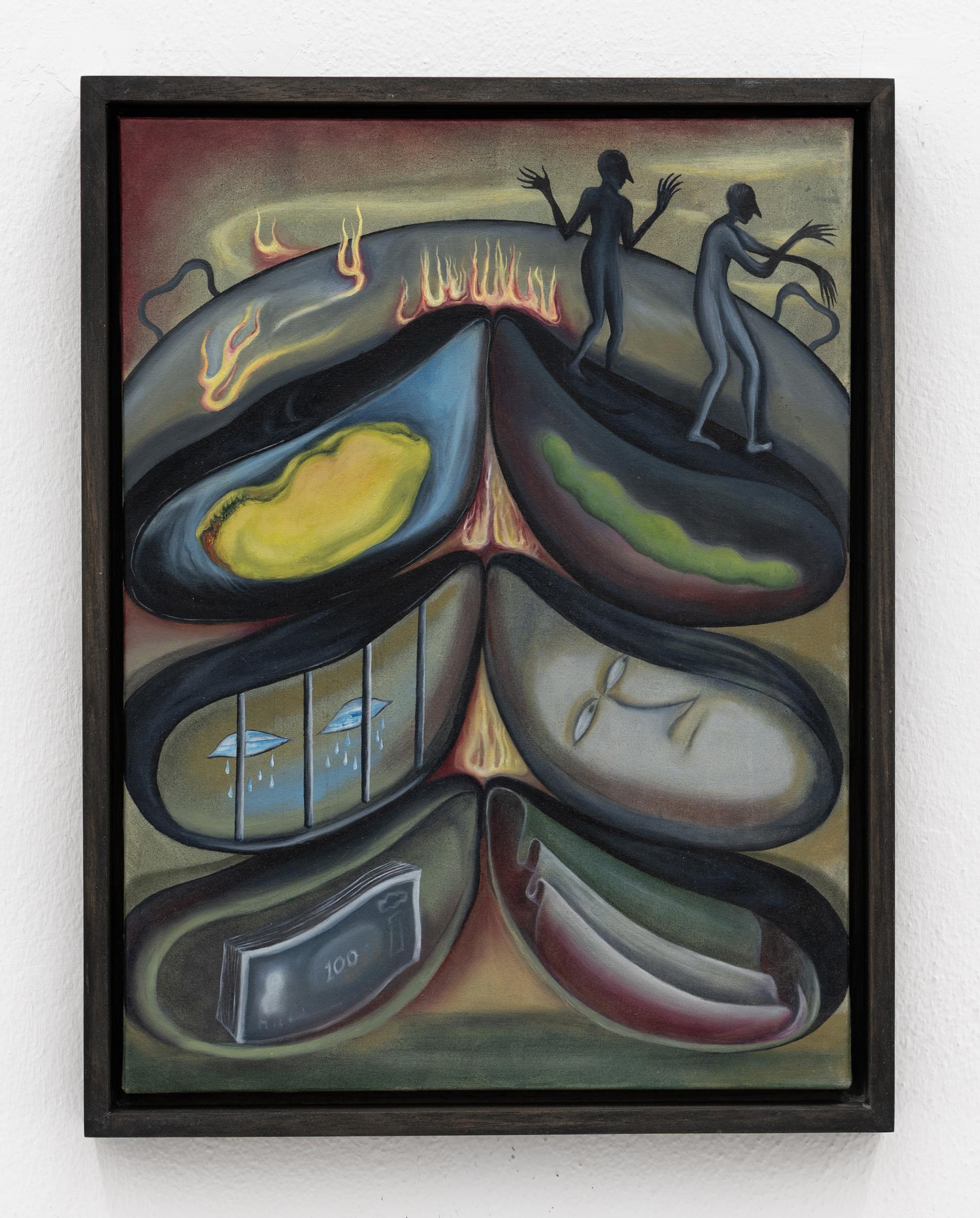In Salon Palermo all the works can be traced back to a figuration linked to a visio-narian dimension. The works in the exhibition hold together thanks to one of the very few lines that can be traced within painting today, that path linked to a tradition that for simplicity's sake could be defined as surrealist or that draws on European expressionism between the two great wars." (from the text by Antonio Grulli)