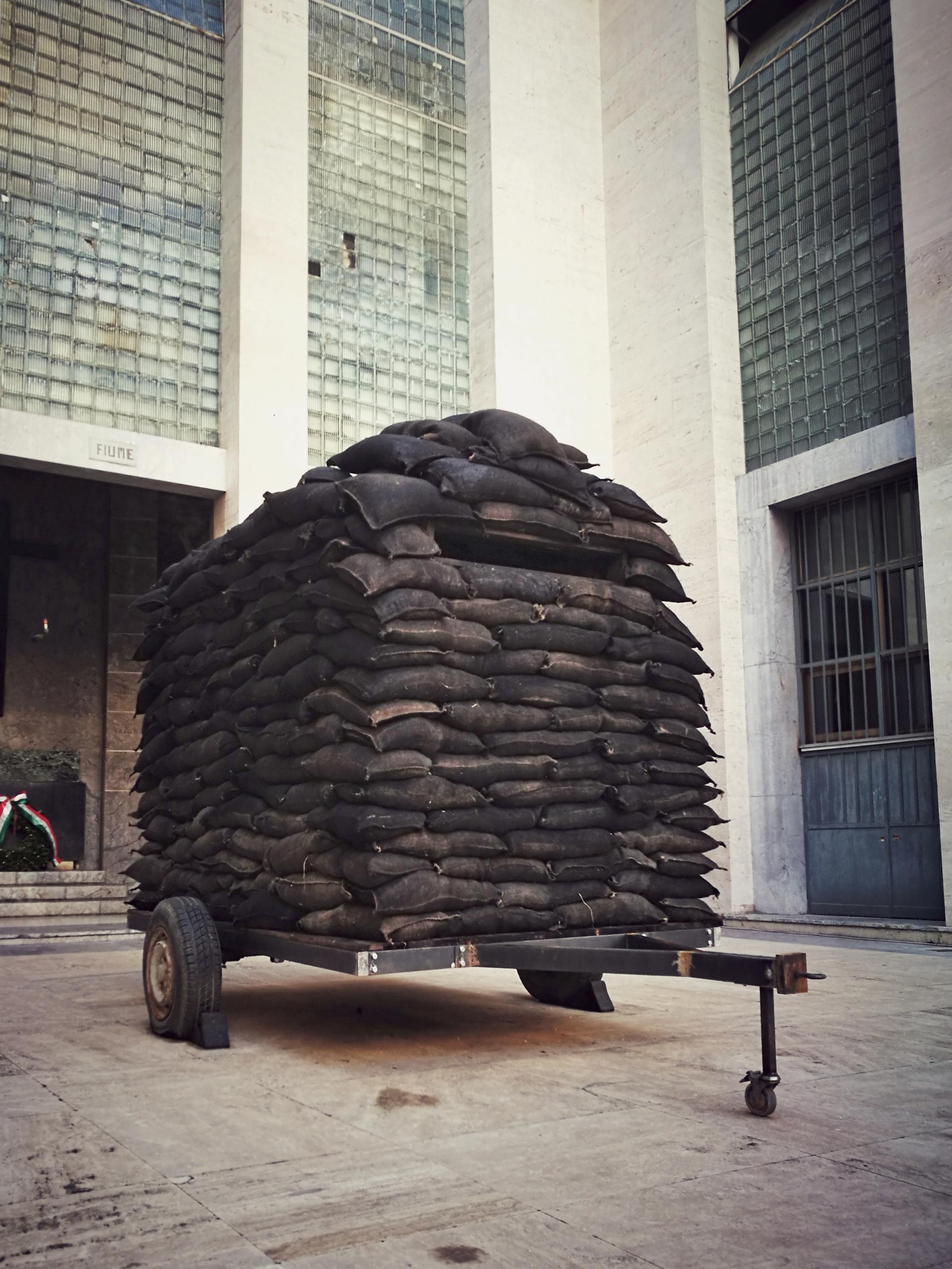 Daniele Franzella, artist engaged in a refined theoretical research mainly conveyed through the language of sculpture and installation, investigates the evocative power of images and their nature as a manipulable language, in a recurring exercise of semantic reworking of symbols and codes. Through a wise use of techniques and materials, Franzella enacts a game of paradoxes and reversals, digging into the value of the material, making the material itself a language, cooperating and co-originating with the idea and concept of each work.
