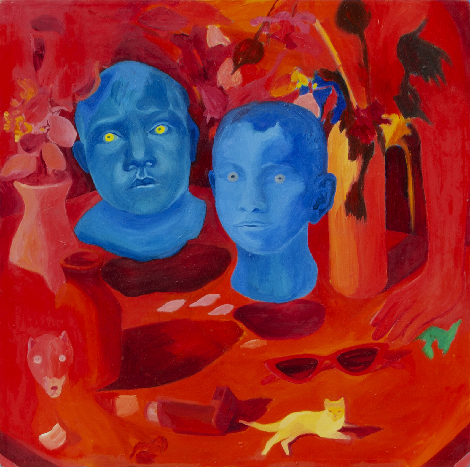 Anna Capolupo's artistic research revolves around the life of everyday things, duly organized in the wake of the pictorial tradition, such as still life, with a visual and conceptual orientation that renews a genre encoded by the history of art and offers new interpretations of own domestic reality. Her still lifes are characterized by the presence of a platform, a table on which childhood games, plants, vases, classical finds and objects of common use rest; a level of symbolic value that elevates the ordinary and the prosaic to an extraordinary and enigmatic dimension, as if we were facing a theatrical scene. To instill this dreamlike atmosphere is the color, its rampant expressive force, often unnatural; it is the outline of the elements devoted to the unfinished and to blend in with the surrounding scene; it is the singular juxtaposition of certain things as if they had found themselves more for fun than for a practical reason. The table top, almost imperceptible, frames and naturally exposes the artist's inner world, divided between dream and reality. Two reading registers that synthesize in the pictorial tangle of still life.