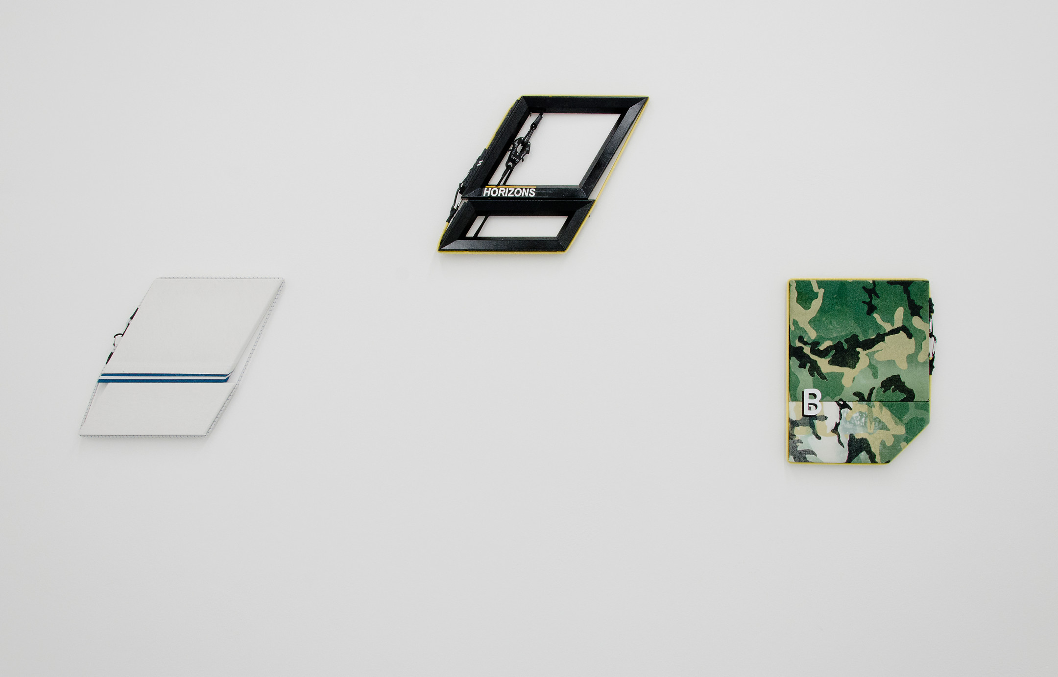 Ben Edmunds is interested in the intersections between abstraction and figuration, between painting and graphics, between image making and marketing, and in his works he employs a variety of techniques associated with crafts and domestic applied arts, such as embroidery or stencilling. His paintings open up a space without borders - evoking new realities and alternative visual environments, inspired by multiple sources: from references to American post-war abstraction to sports graphics and equipment (shock cords and carabiners), from billboard design to more indirect factors such as the theoretical writings on the game, up to the chill out music of the historic London record label Ministry of Sound, in an omnivorous approach that helps him to distort the "familiar" perceptions of painting. He often uses shaped wooden supports to challenge the conventions of the rectangular surface, pointing towards the leisure activities that are at the heart of his work.