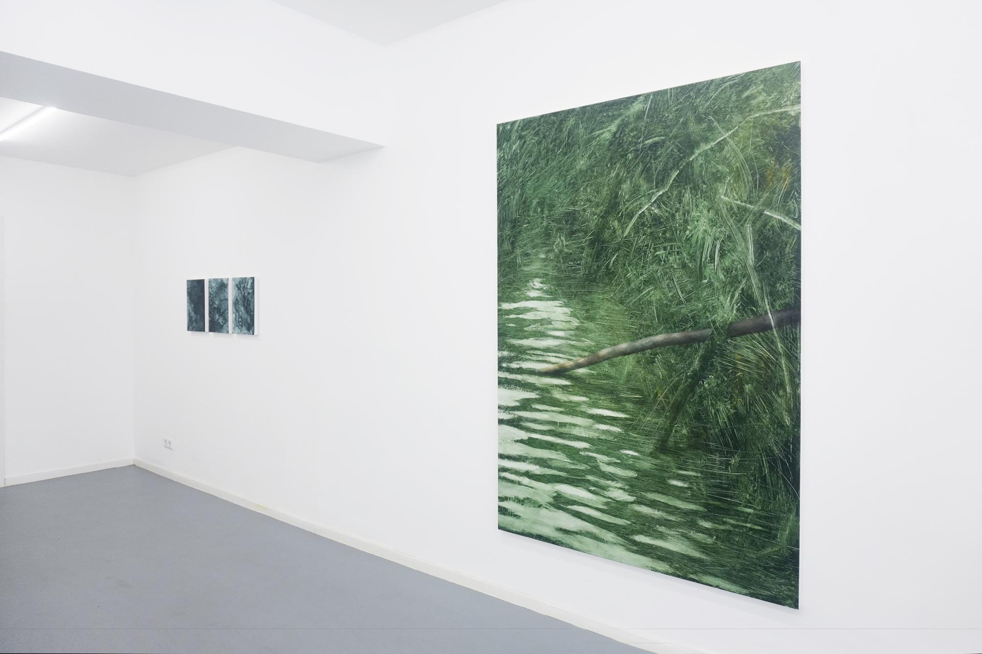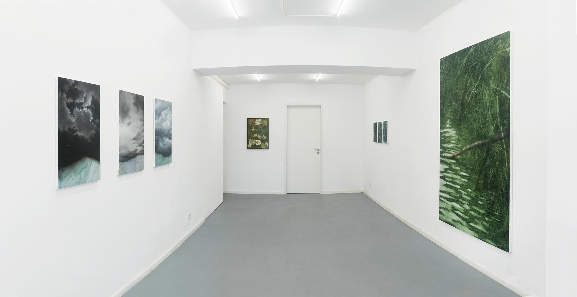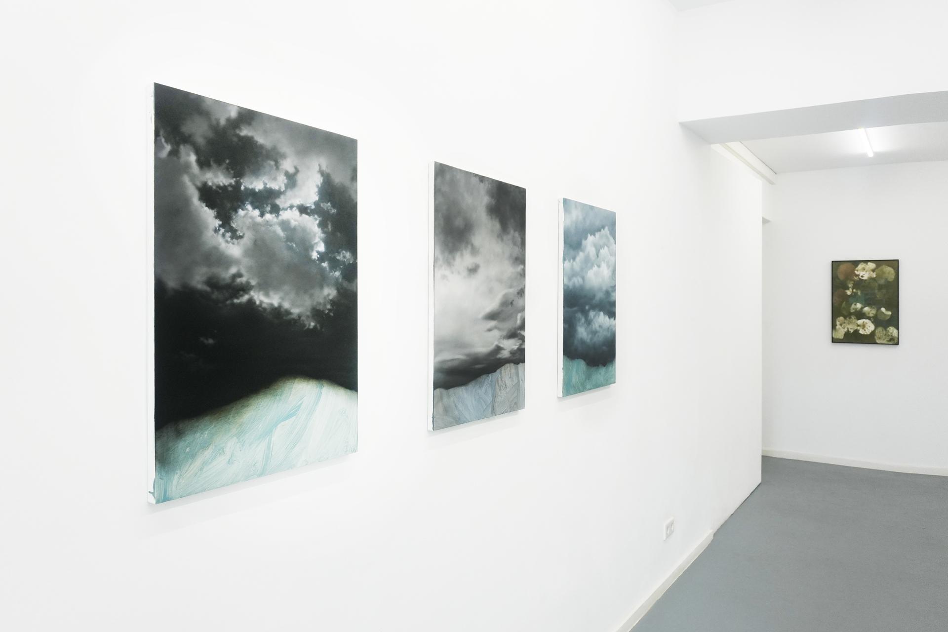 The works on display explore precisely this boundary between things—the depth hidden beneath appearances and the paint that settles on the real, transforming into an image that nearly touches abstraction. The compositions on view are landscapes created through contact and tension, unfolding at the threshold between elements. The negative and the positive intertwine, creating an adherence of surfaces that mold and adapt to one another, just as water conforms to the shape of the objects that contain it. Likewise, the sky, the field, the very matter: every substance of nature takes on the form that the other grants it. Painting, in the same way, adapts to this constant becoming.