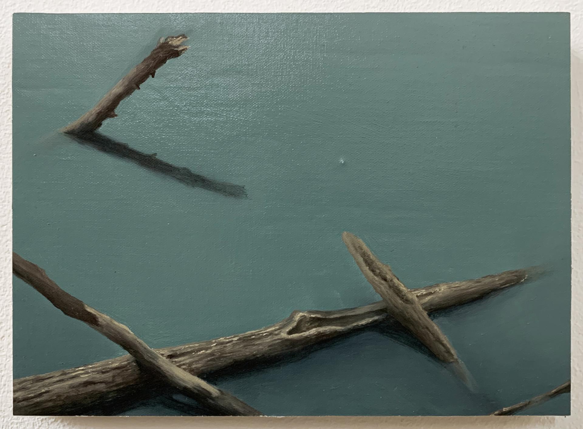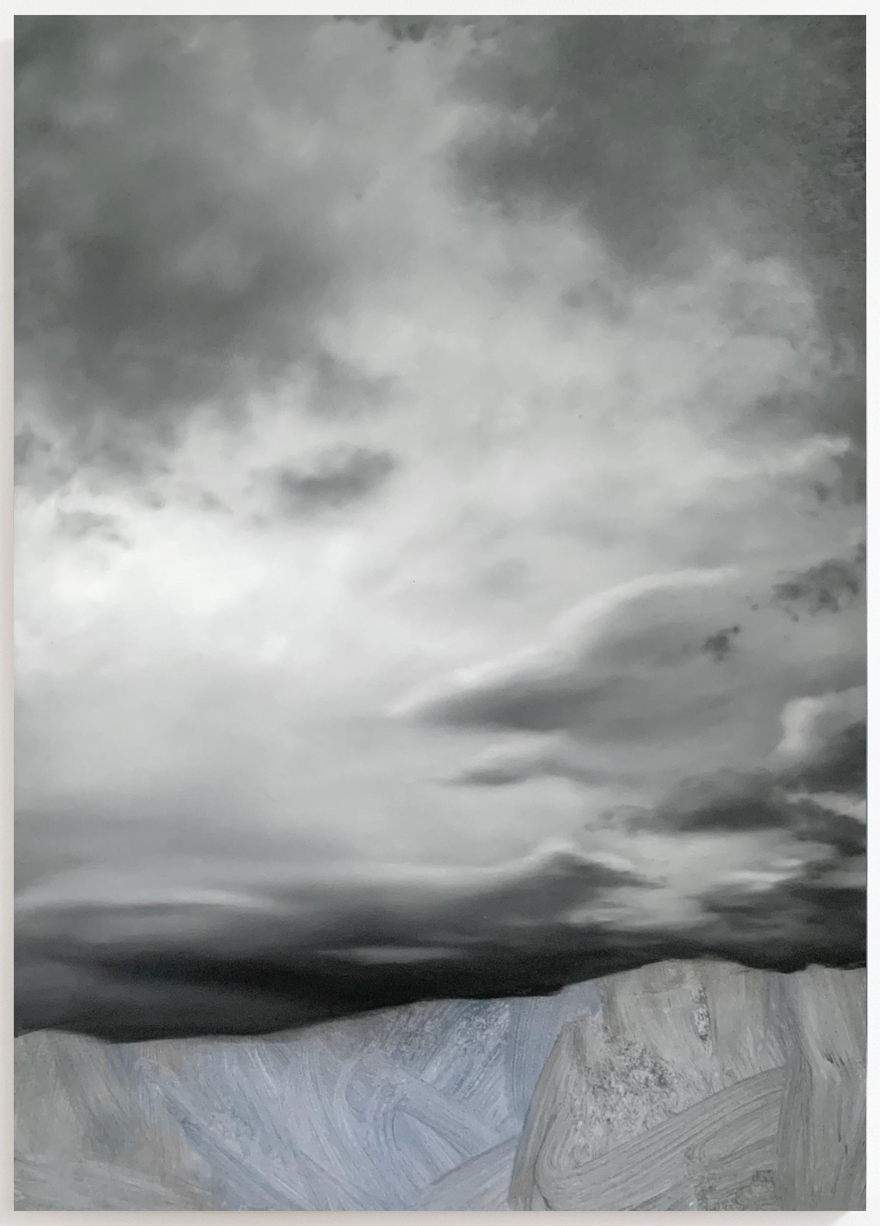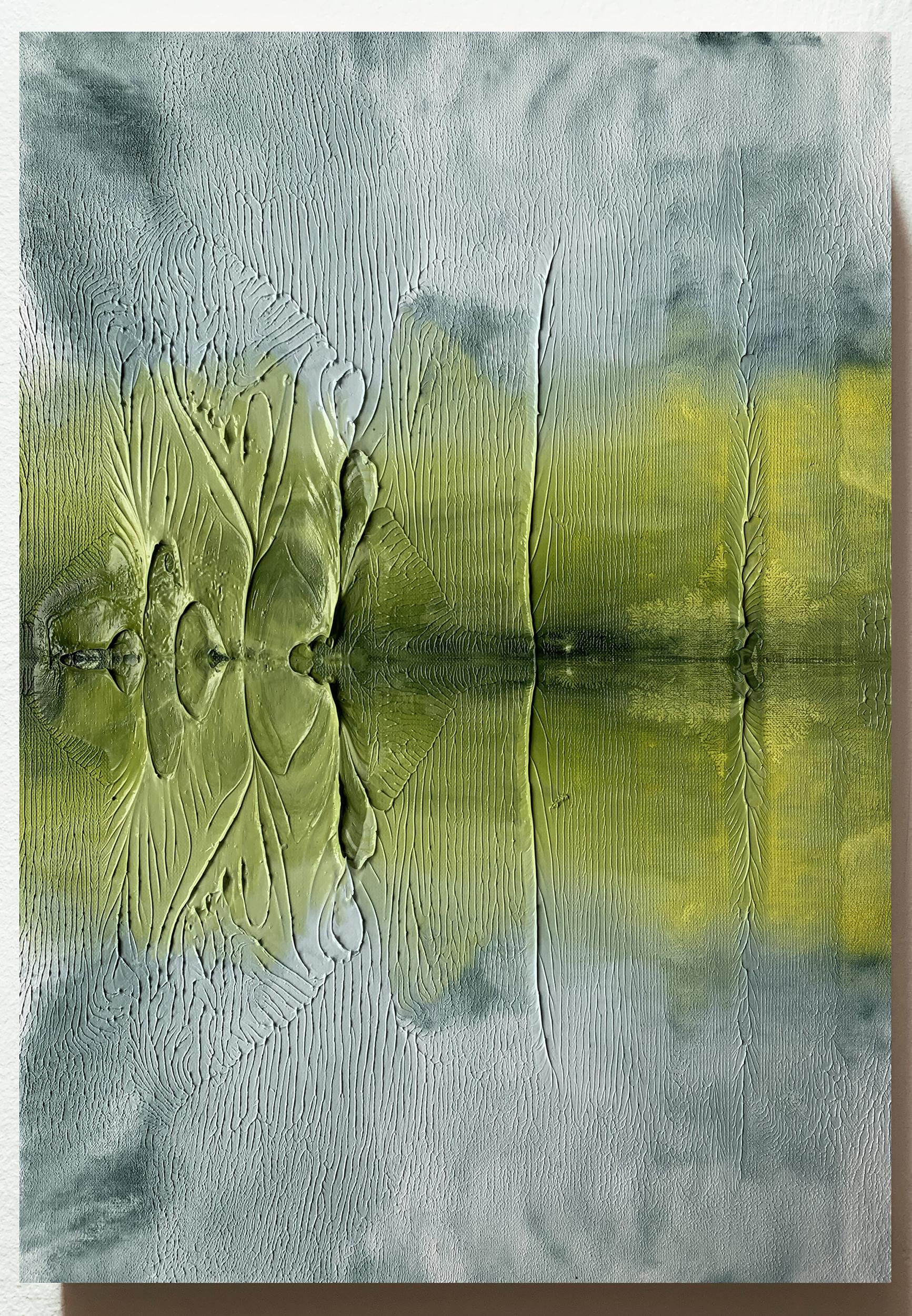 The works on display explore precisely this boundary between things—the depth hidden beneath appearances and the paint that settles on the real, transforming into an image that nearly touches abstraction. The compositions on view are landscapes created through contact and tension, unfolding at the threshold between elements. The negative and the positive intertwine, creating an adherence of surfaces that mold and adapt to one another, just as water conforms to the shape of the objects that contain it. Likewise, the sky, the field, the very matter: every substance of nature takes on the form that the other grants it. Painting, in the same way, adapts to this constant becoming.