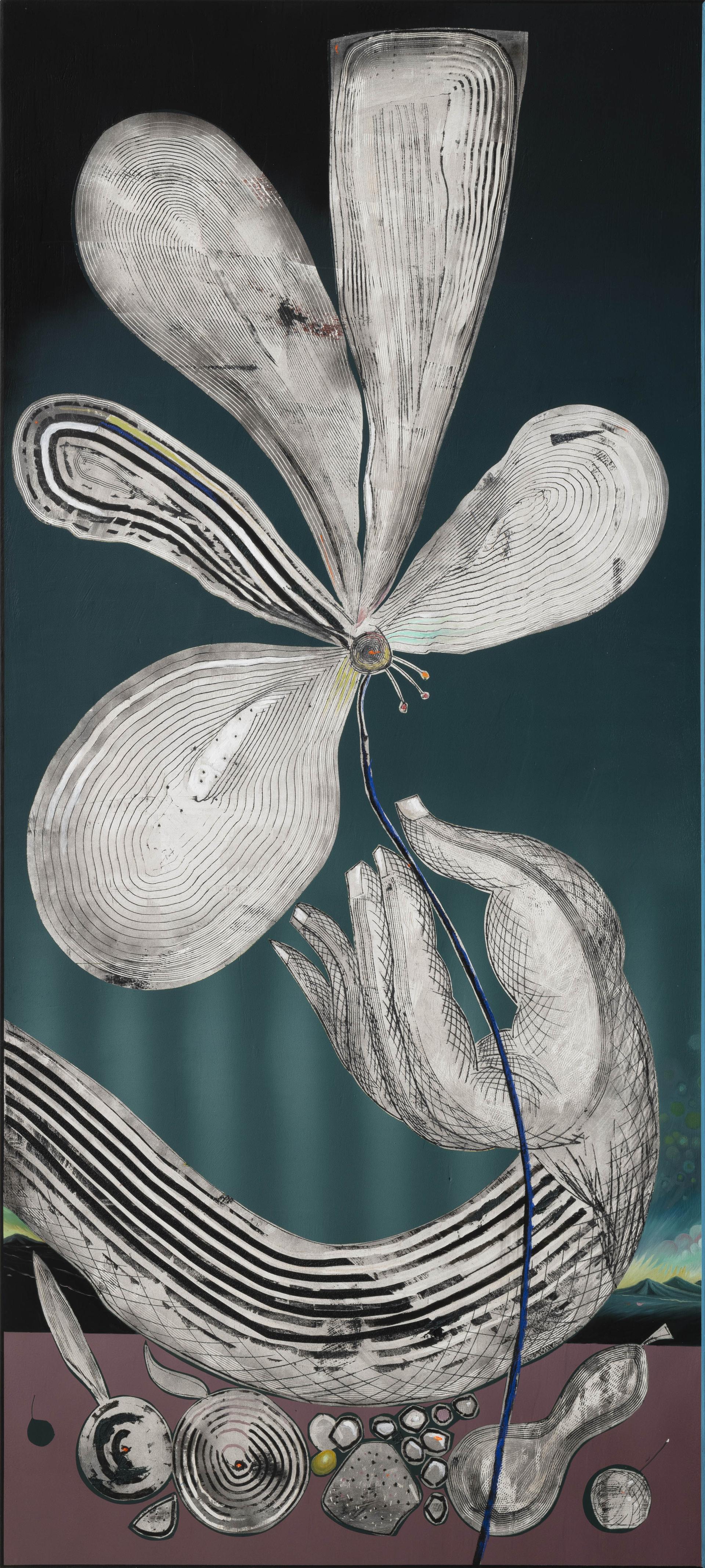 The contrast between delicacy and monumentality is one of the central themes of the exhibition. On the one hand, the flower symbolizes fragile beauty; on the other, Barbieri uses the force of painting and sculptural materials – such as concrete – to emphasize the physicality of the works, heightening the tension between the grace of the subjects and the power of the technique. The artist literally carves into the surfaces of his paintings, creating incisive marks reminiscent of sculpture, which give a tactile and three-dimensional quality to his compositions.