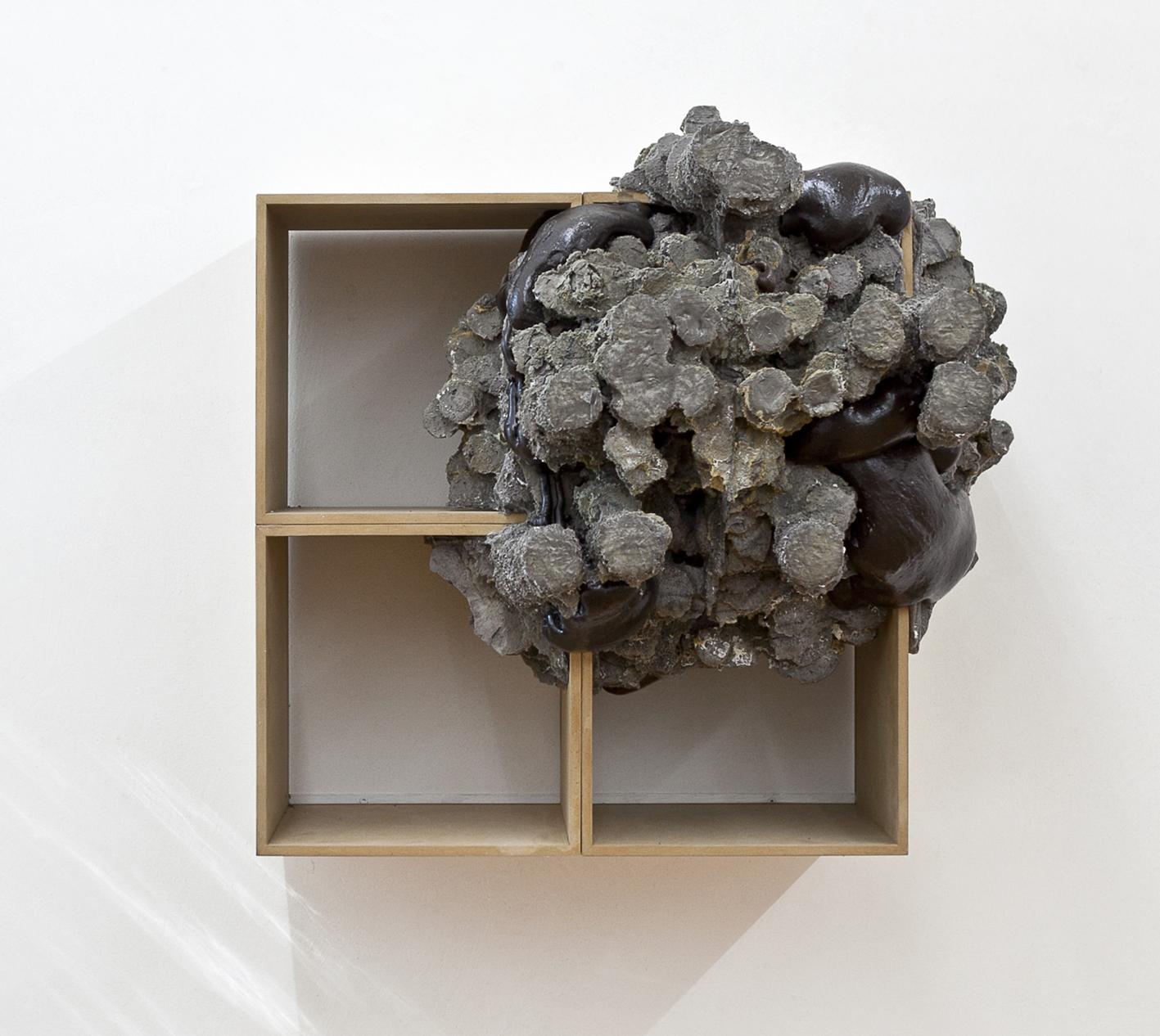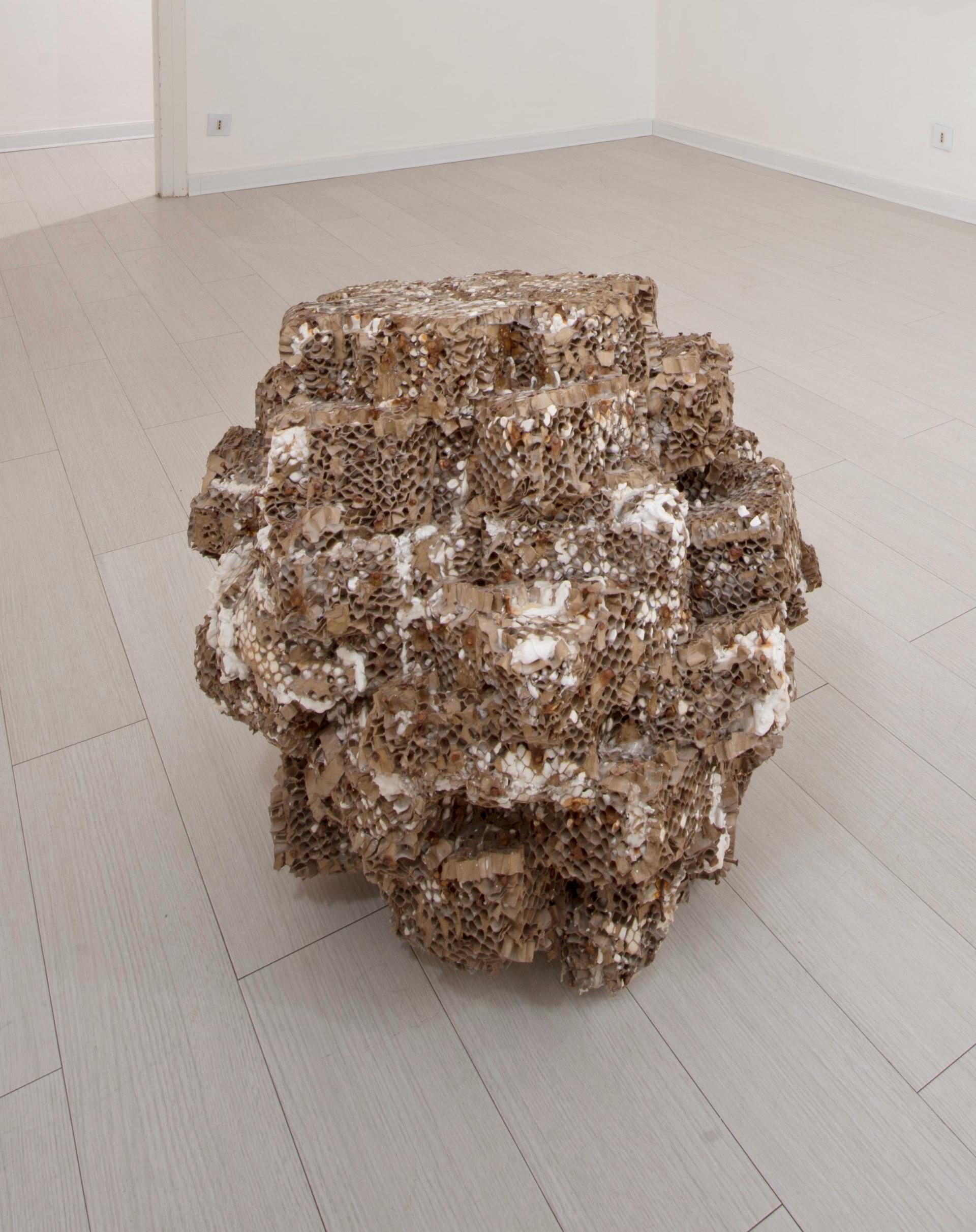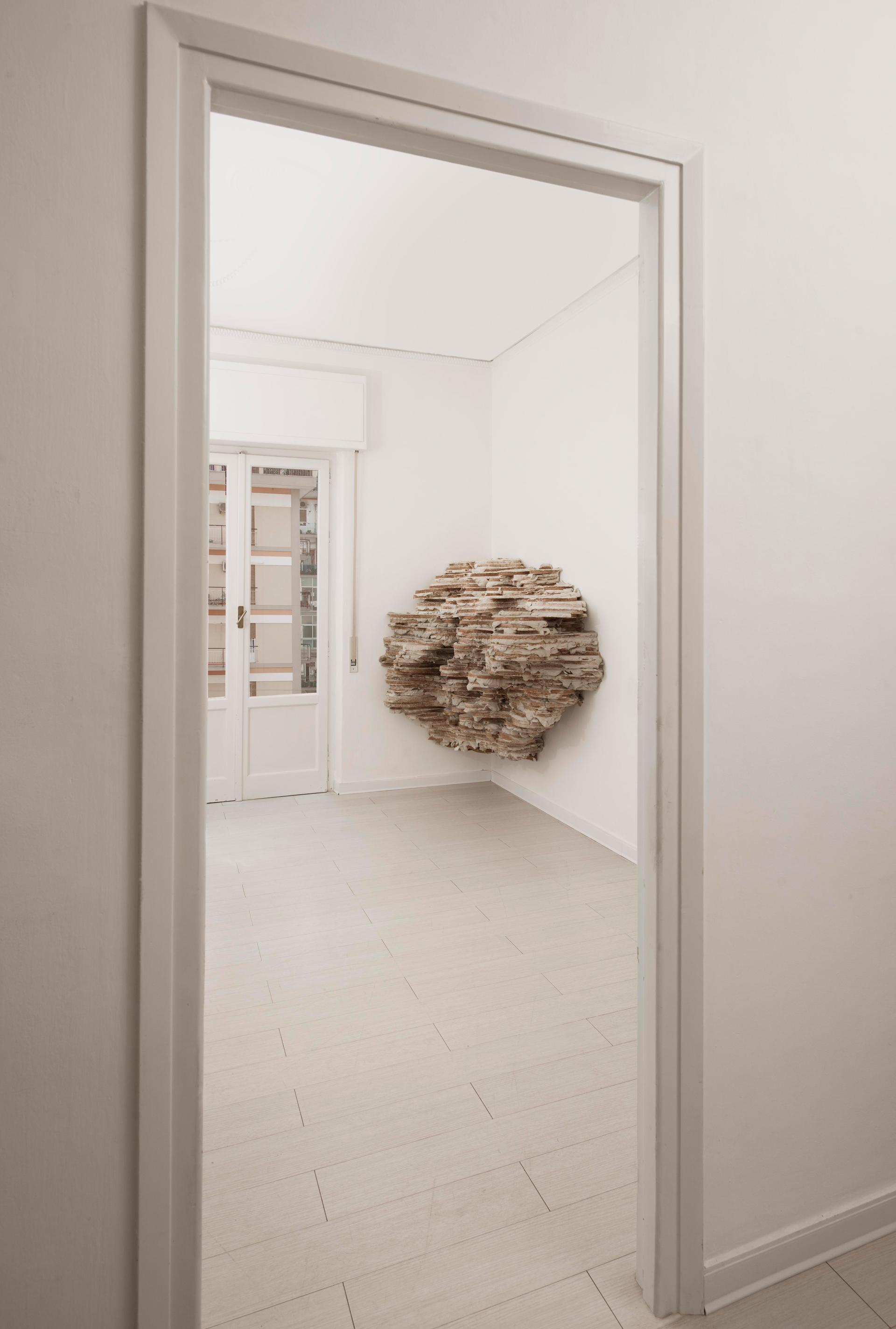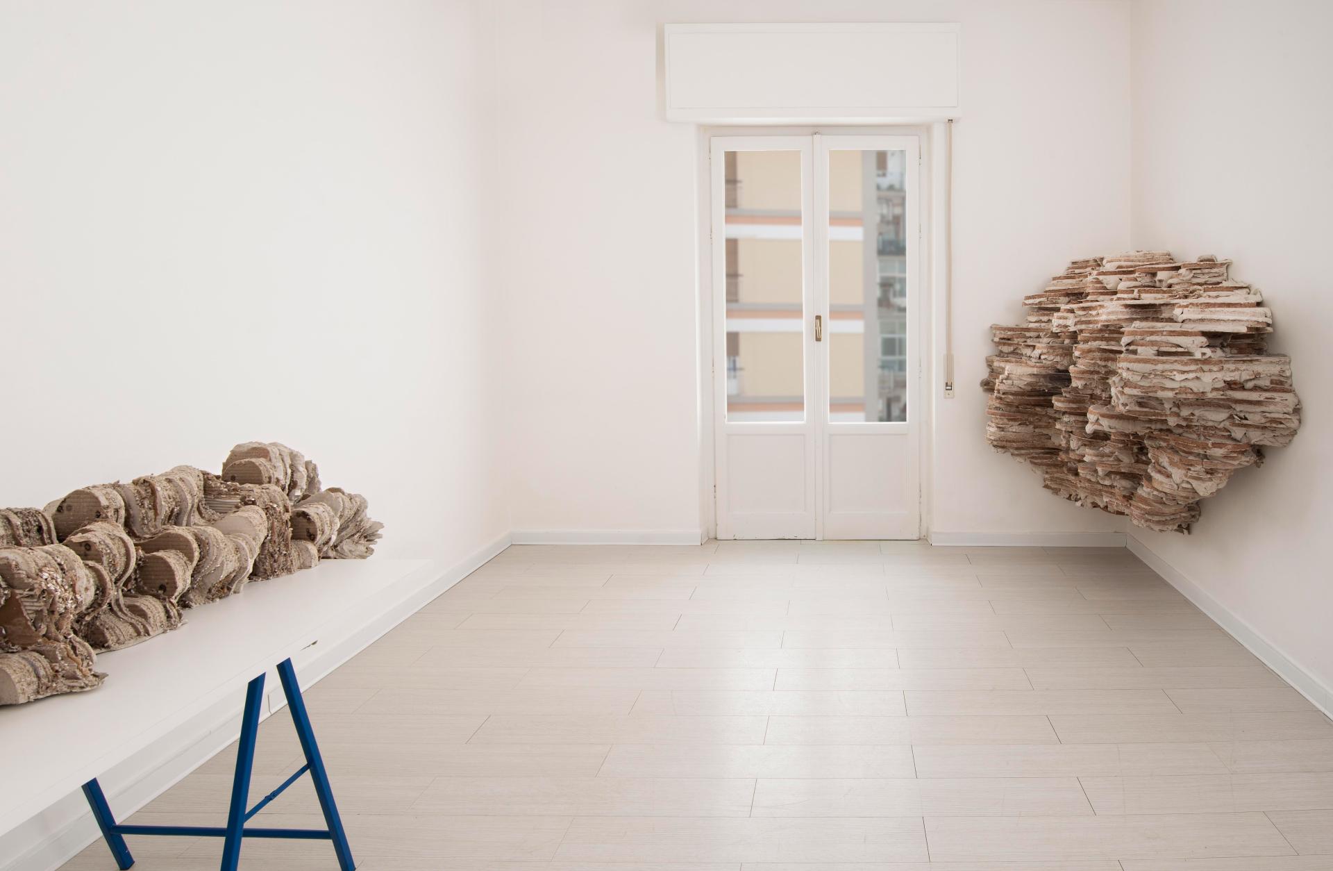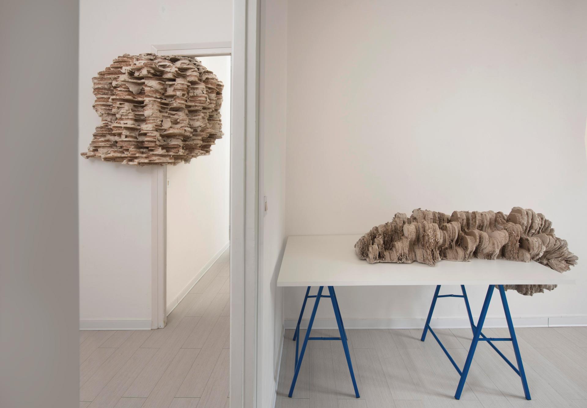 Fleig's sculptures develop as organic structures in a state of proliferation and growth, invading the space that houses them: support structures, pillars, walls, floors, windows, ceilings, become for the Artist potential points of anchorage of his installations, that, in some cases, are clinging to the outside of buildings of exhibition spaces and museums - as parasitic bodies or organogenic concretions - capable of interrupting, sometimes eerily, the normality of the known places, of the urban spaces safe and defined.