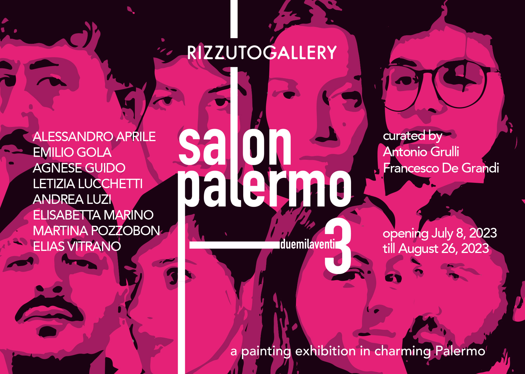 SALON PALERMO 3, group show focused on young Italian painting curated by Antonio Grulli and Francesco De Grandi, is confirmed as an unmissable event of the Palermo summer and in this third edition the protagonists are: