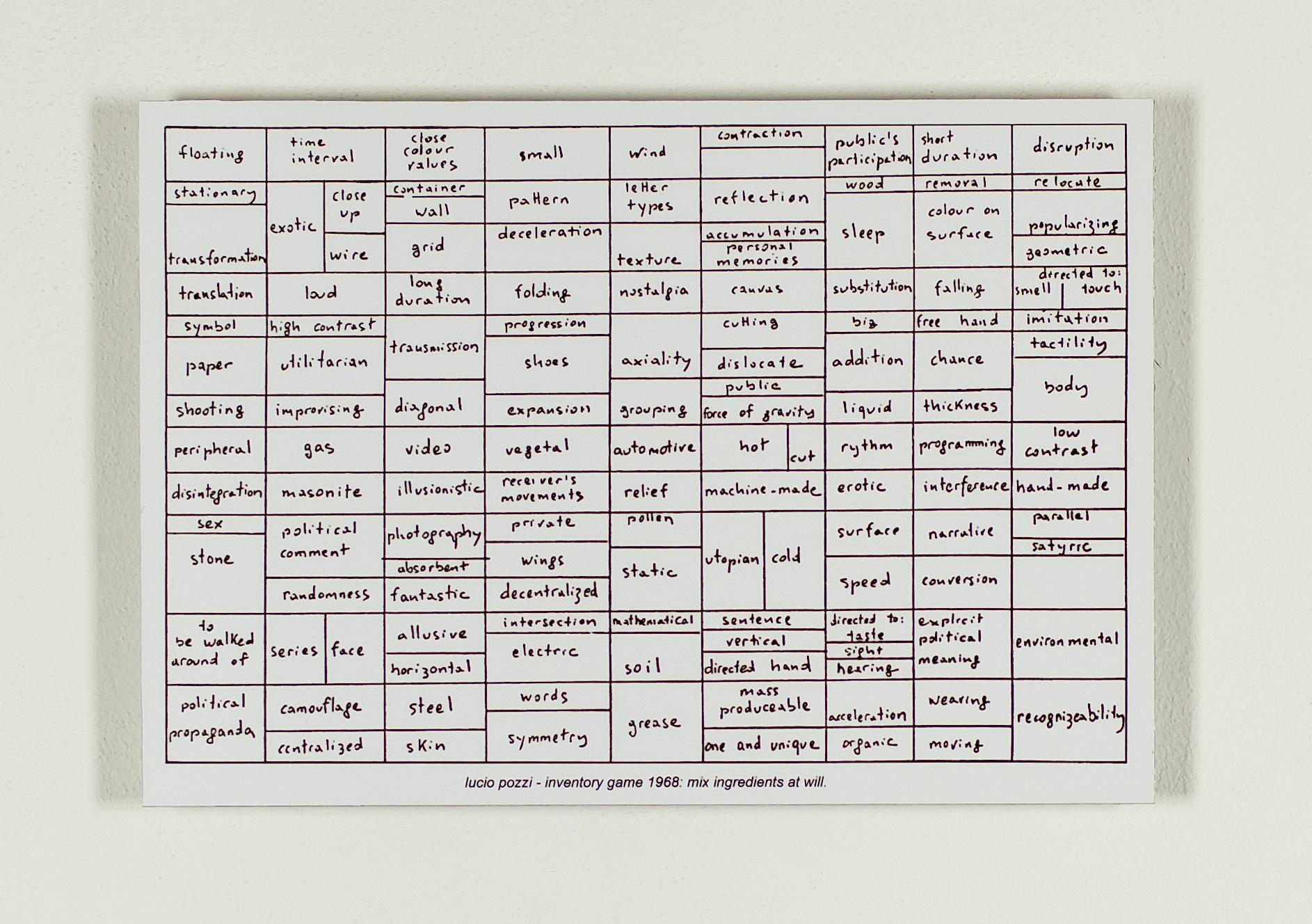 From performance to environmental installation, Lucio Pozzi's works have always made clear two opposing systems, a dialogue that has always missed the didactic narrative and the simple commentary on reality.