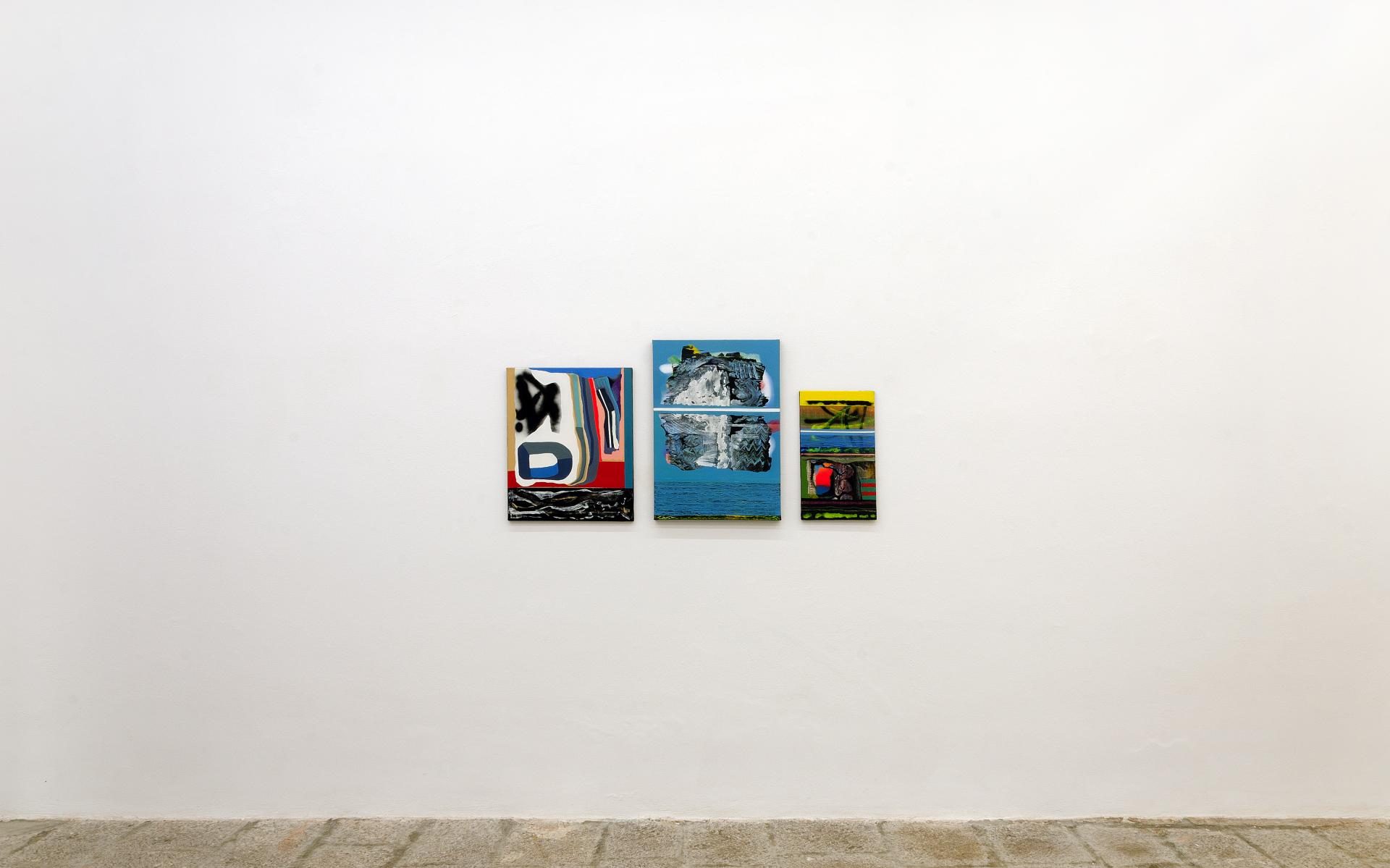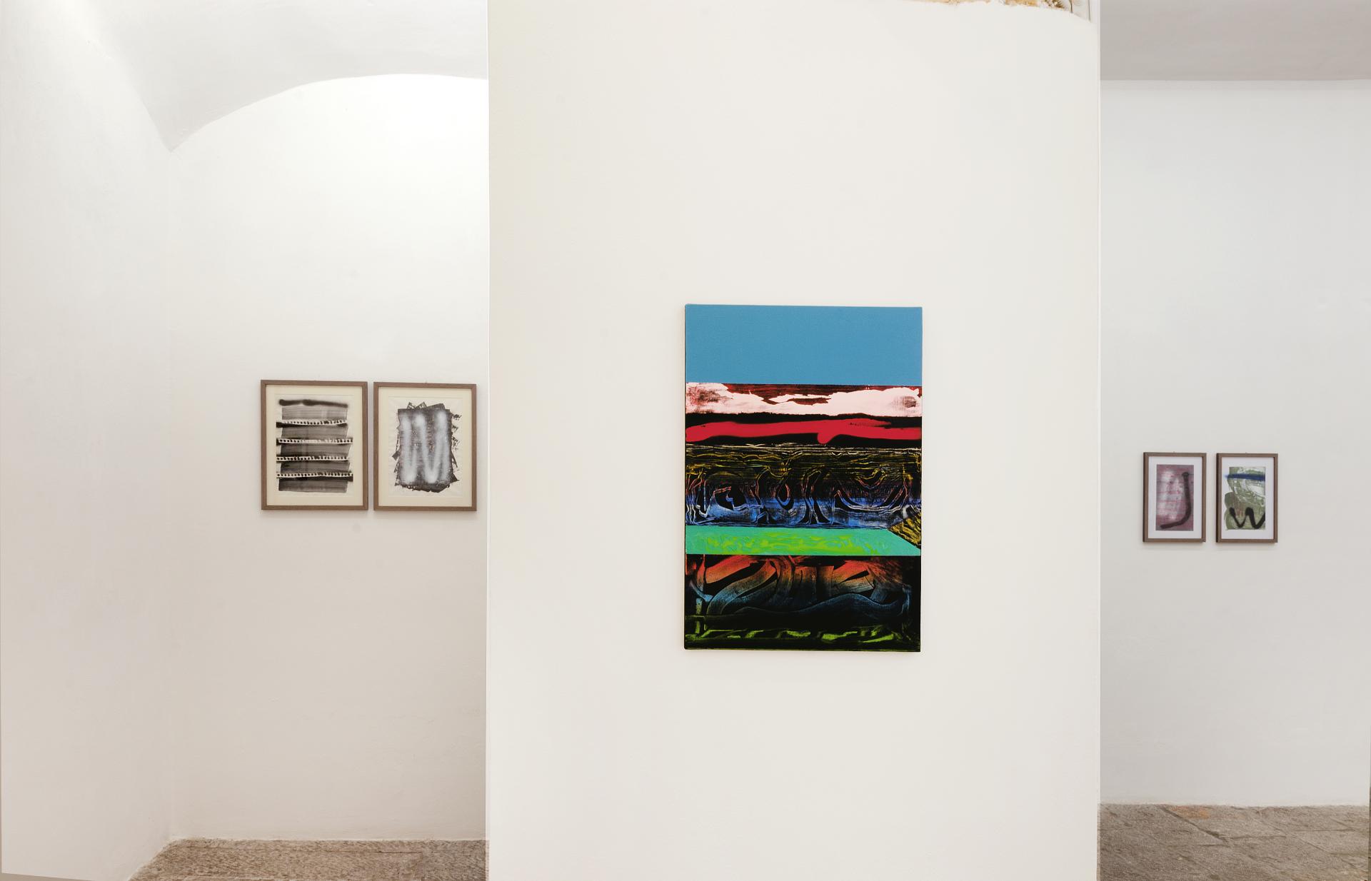 In the text that accompanies the exhibition De Grandi writes: “A vocabulary of signs and surfaces used to compose abstract concrete scores, scrolling between the transitory properties of painting and the fluid dimensions of the world of signs, and bringing them back to the concreteness of form, solidity of matter."